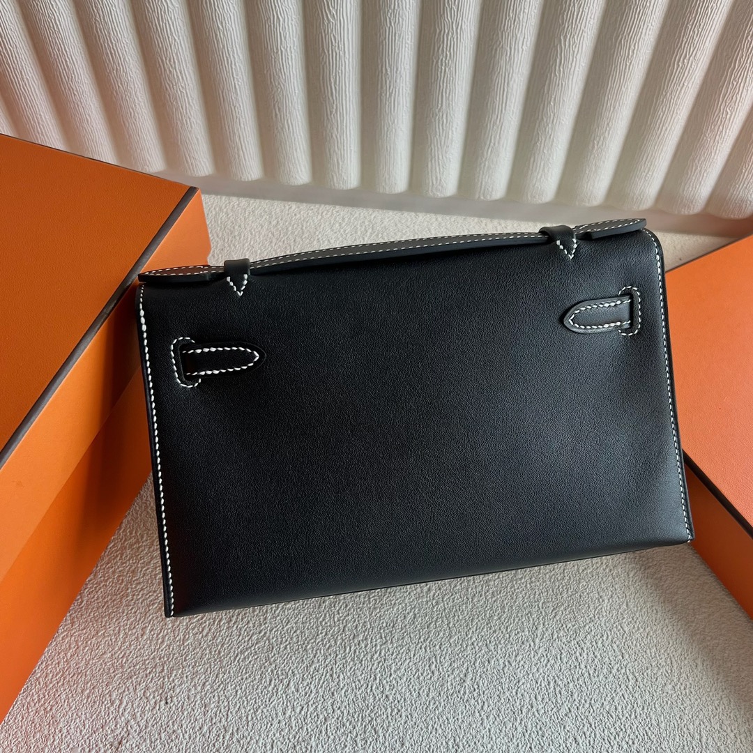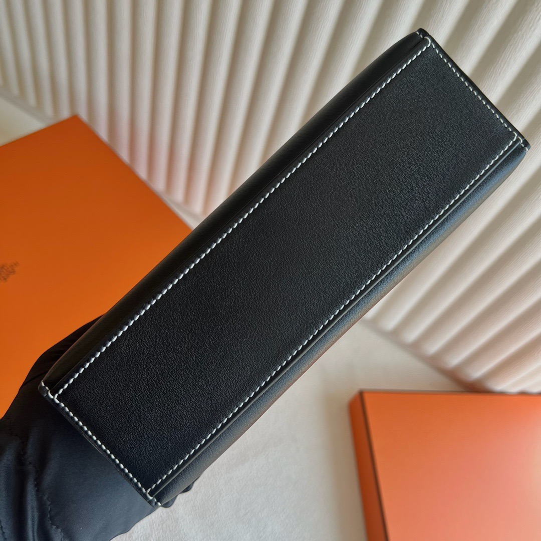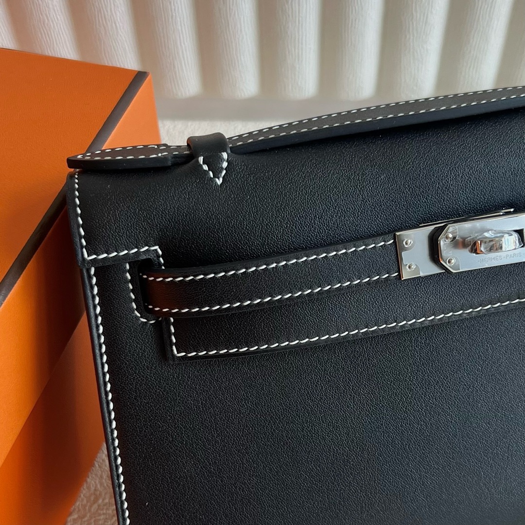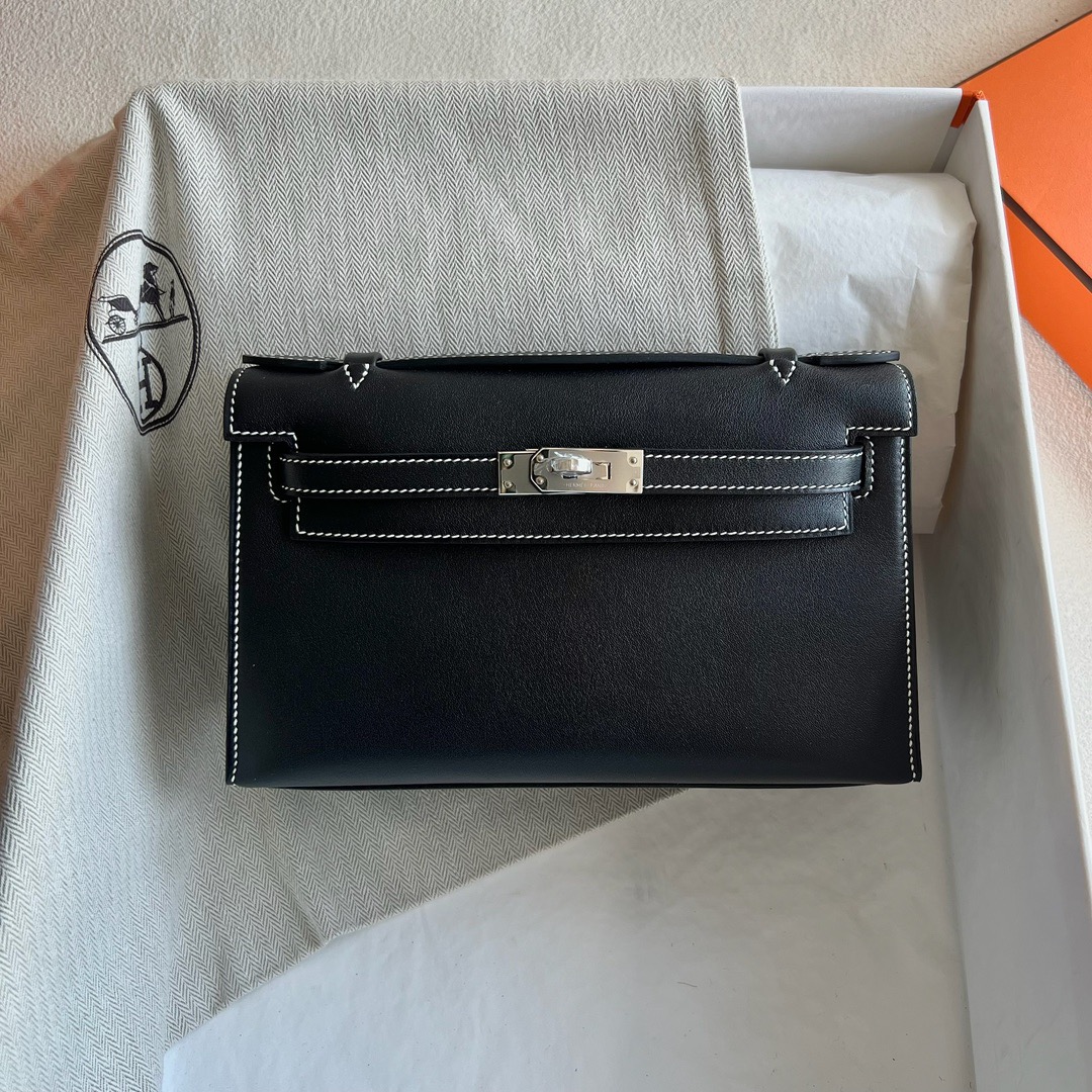 Hermès Special Order Mini Kelly Pochette 22cm Swift Leather CK89 Noir 黑色 And 9D Jaune Ambre 琥珀黄 Palladium Hardware(PHW)