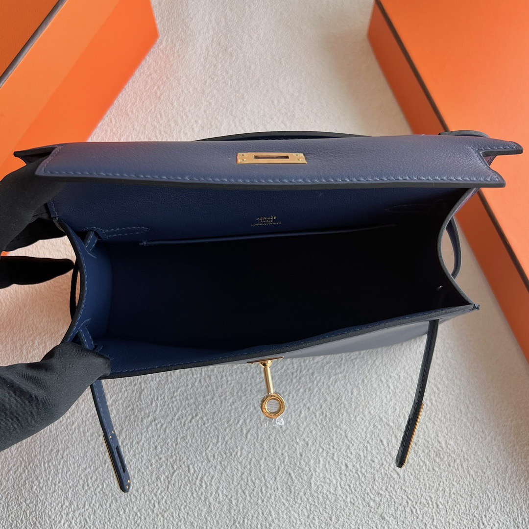 Hermès Mini Kelly Pochette 22cm Swift Leather M3 Bleu Encre 墨水蓝 Gold Hardware(GHW)