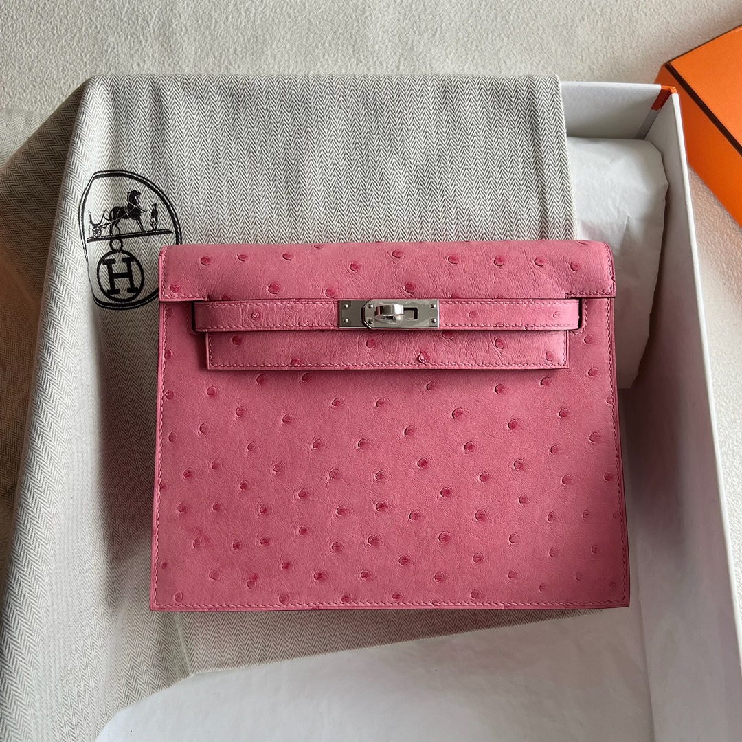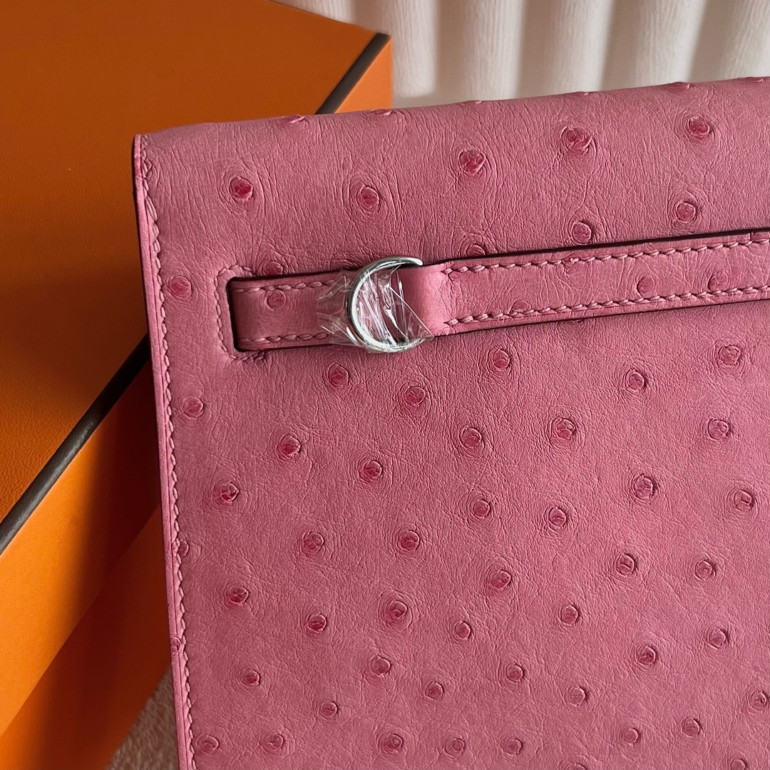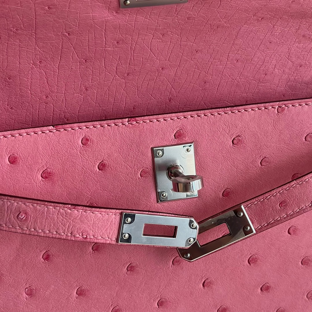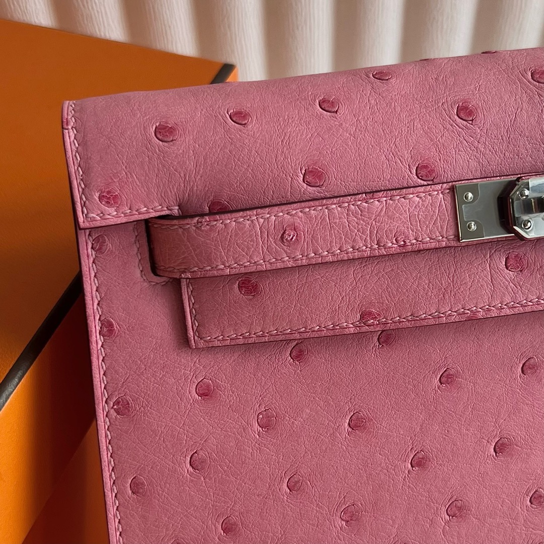 Hermès Kelly Danse 22cm How much South Africa Klein Karoo Original leathe Ostrich L4 Rose bubblegum 泡泡粉 Palladium Hardware(PHW)