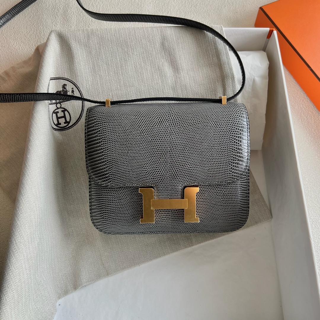 Hermès Constance 18cm Lizard Leather CC84 Gris Posce 深灰色 Gold Hardware(GHW)