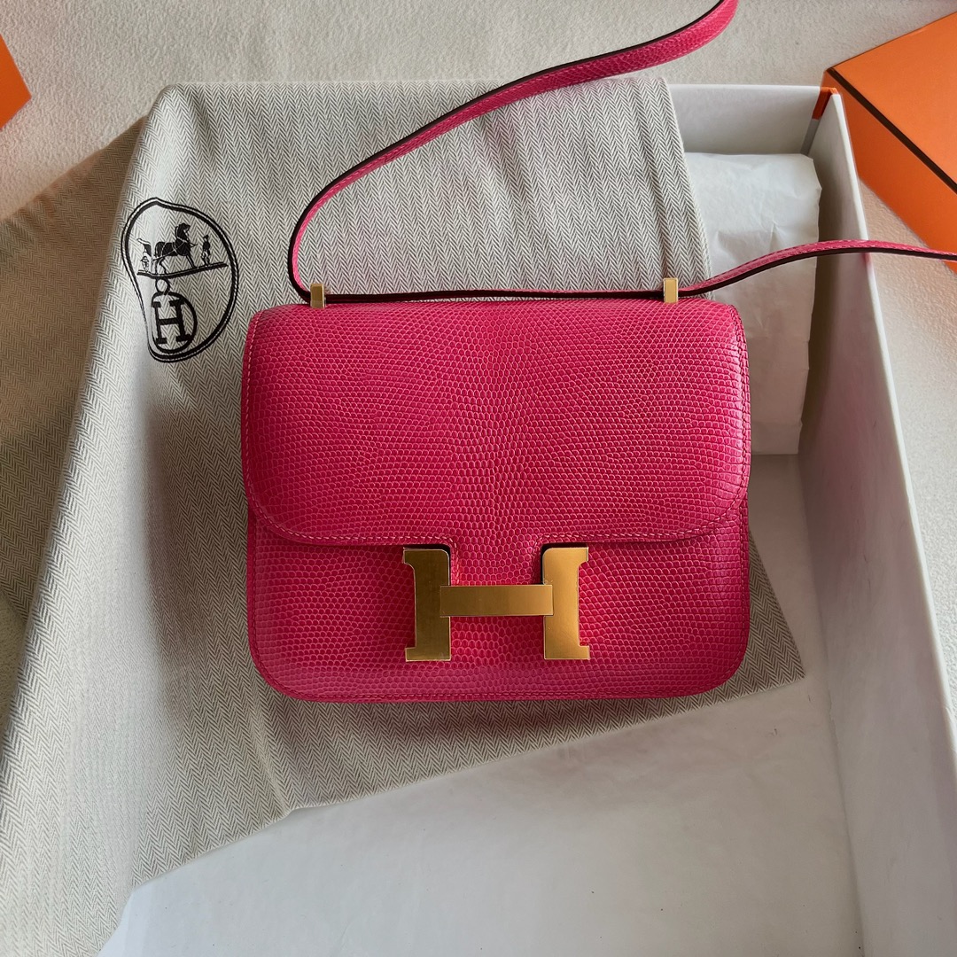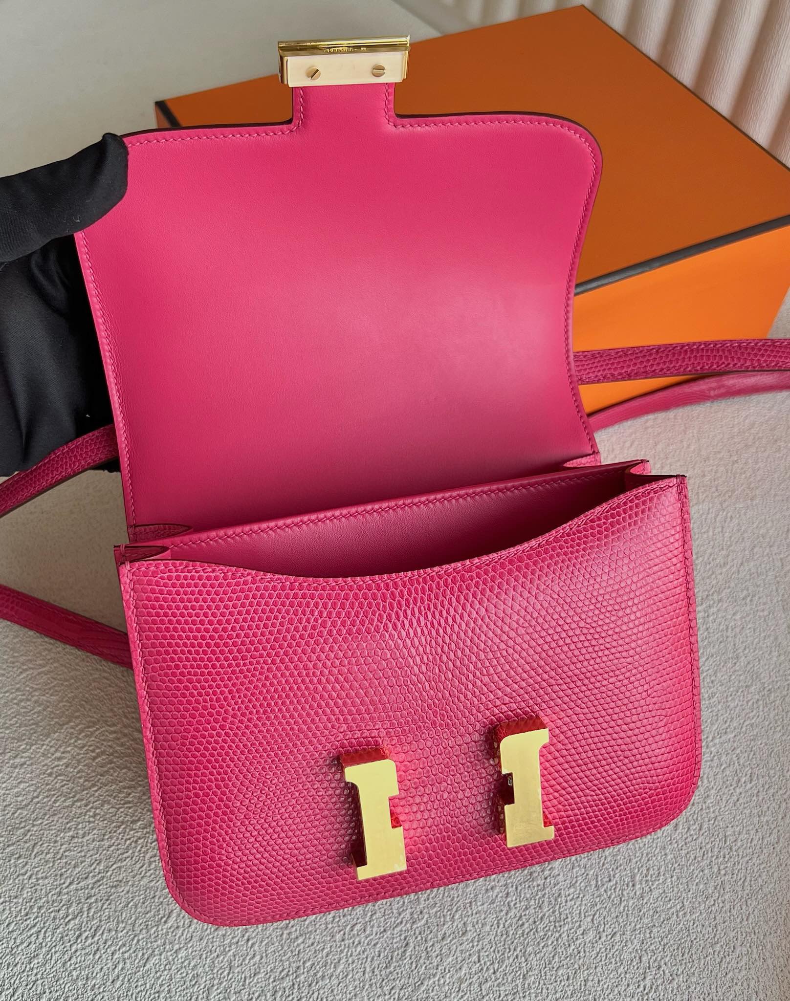 Hermès Constance 18cm Lizard Leather 5J Fuchsia Pink 吊钟海棠粉 紫红色 桃红色 Gold Hardware(GHW)