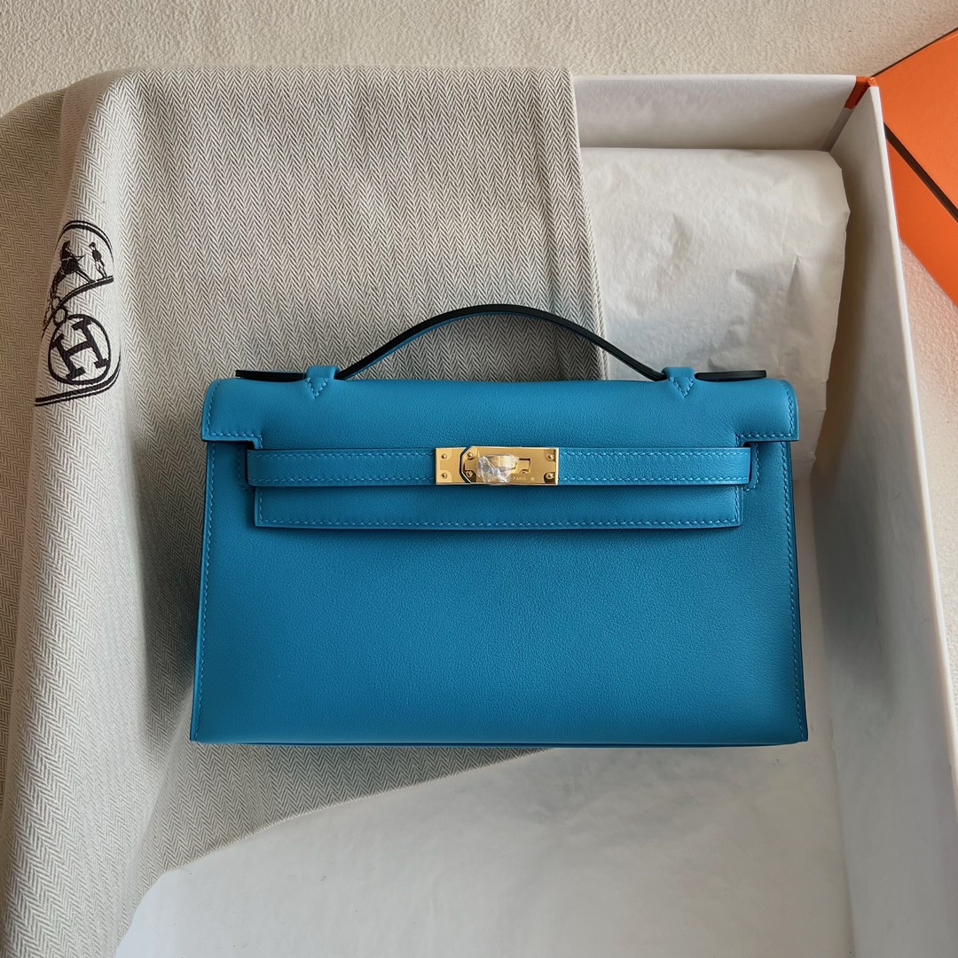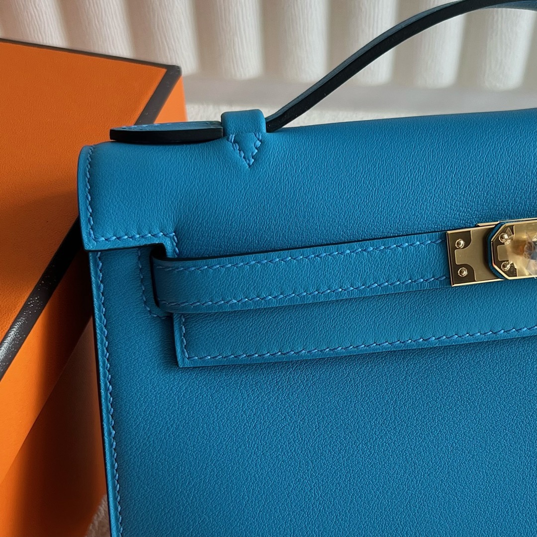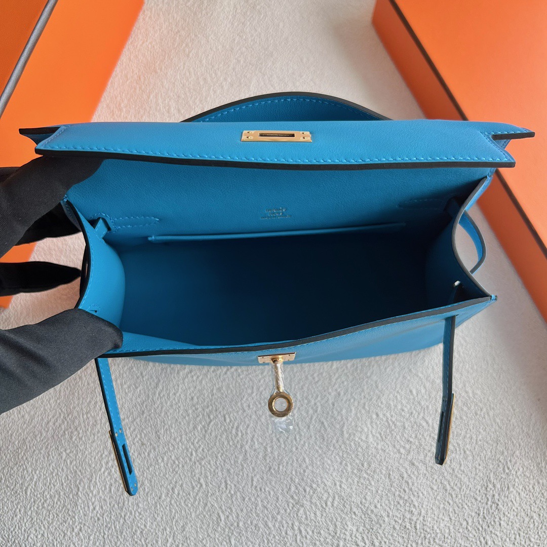 Hermès Mini Kelly Pochette 22cm Swift Leather CC0F Bleu frida 弗里达蓝 Gold Hardware(GHW)