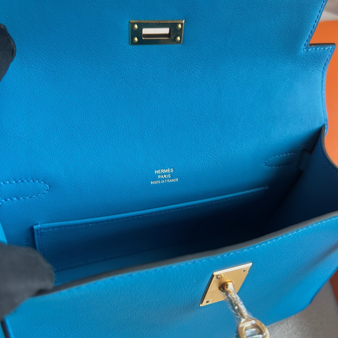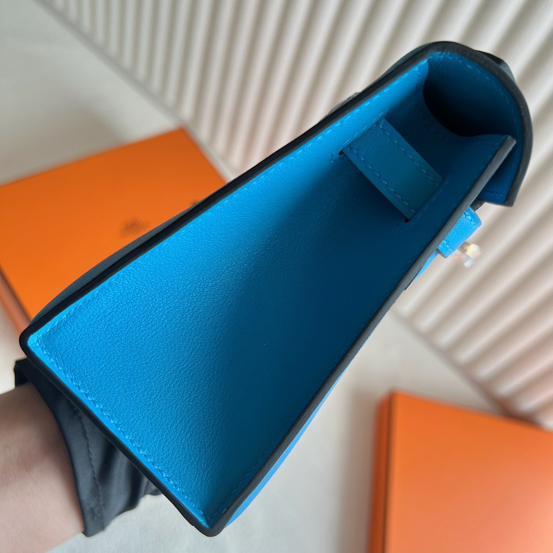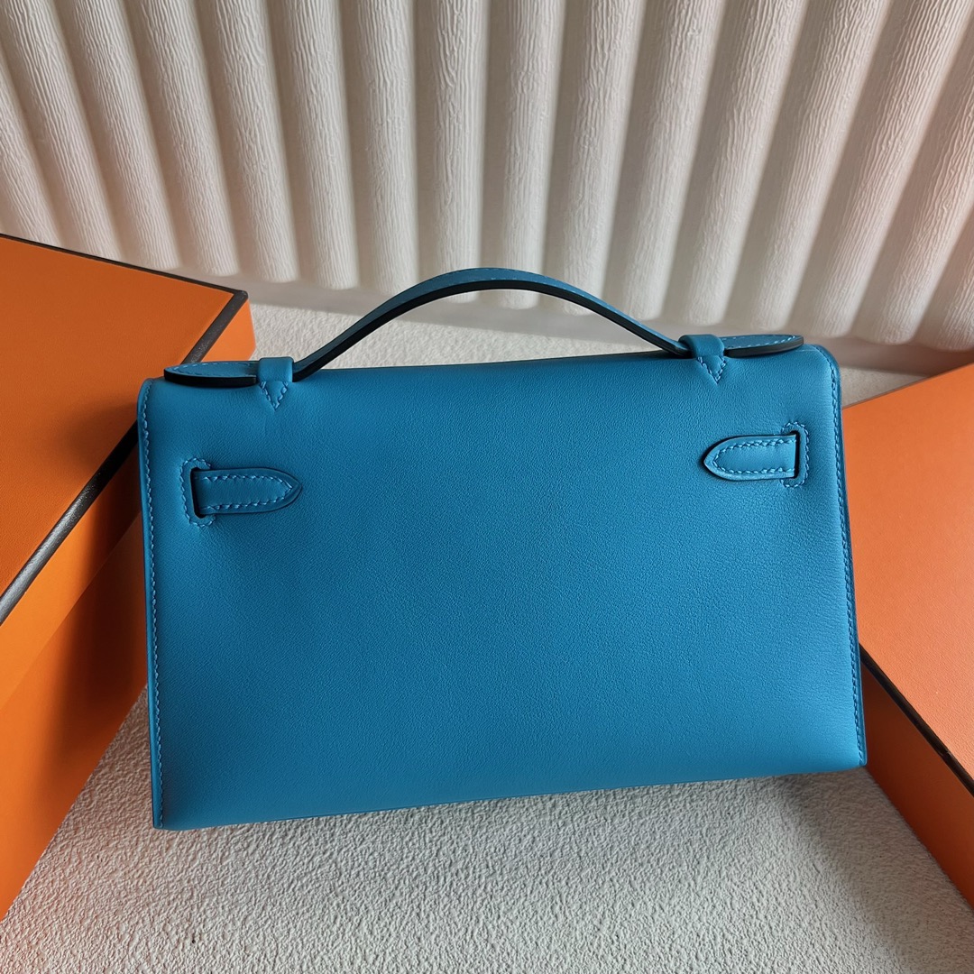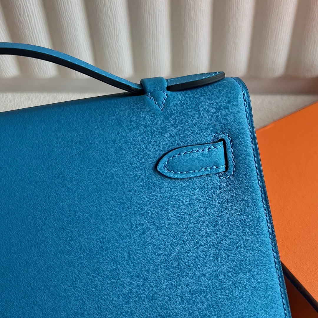 Hermès Mini Kelly Pochette 22cm Swift Leather CC0F Bleu frida 弗里达蓝 Gold Hardware(GHW)
