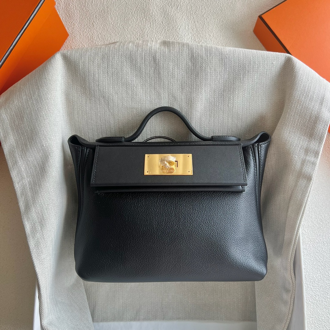 Hermès Mini 24 24 Evercolor/Swift Leather CC89 Noir 黑色 Gold Hardware(GHW)