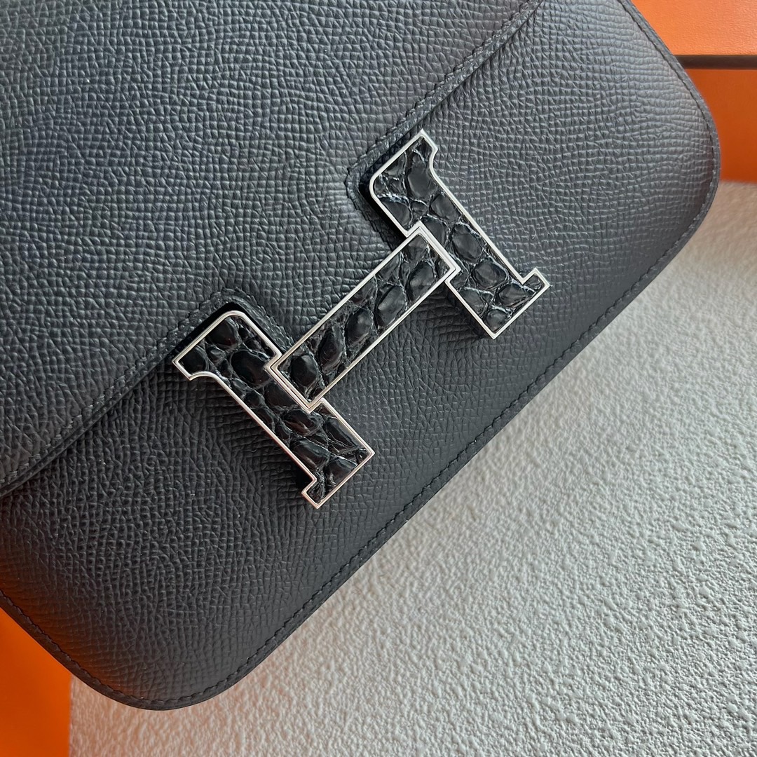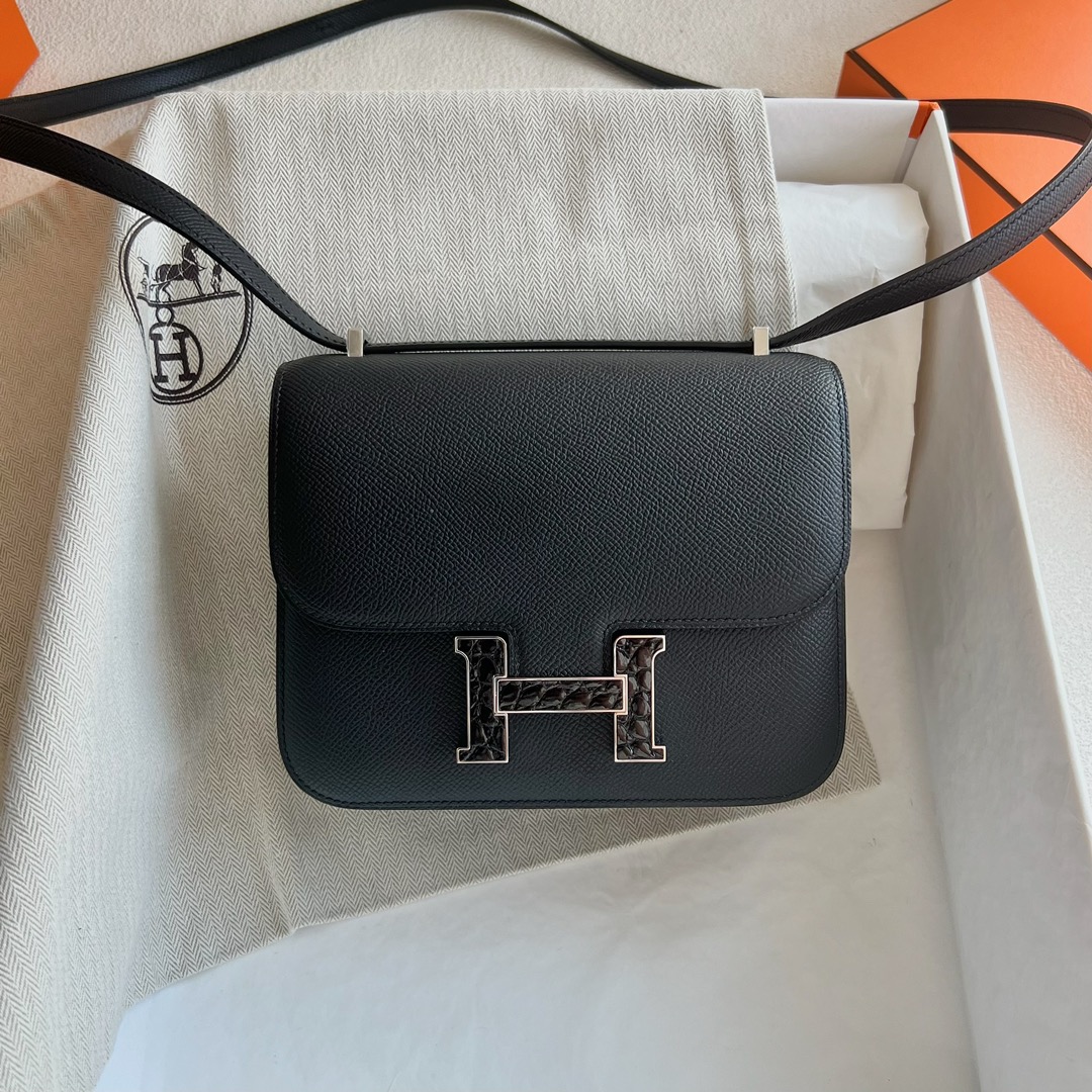 Hermès Constance 18cm Epsom CK89 Noir 黑色 Alligator Crocodile Palladium Hardware(PHW)