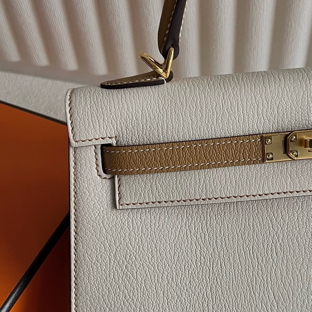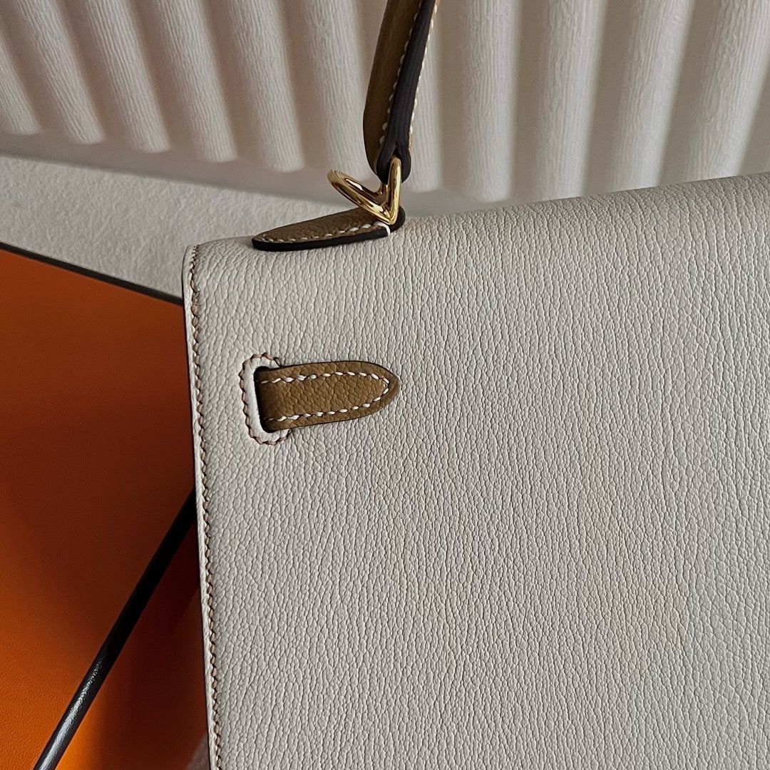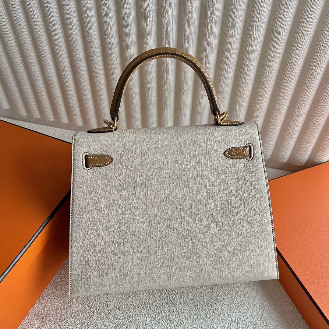 Hermès Special Order (HSS) Kelly 25cm Sellier Chevre Mysore CC10 Craie 奶昔白 And CC4B Biscuit 饼干色 Gold Hardware(GHW)