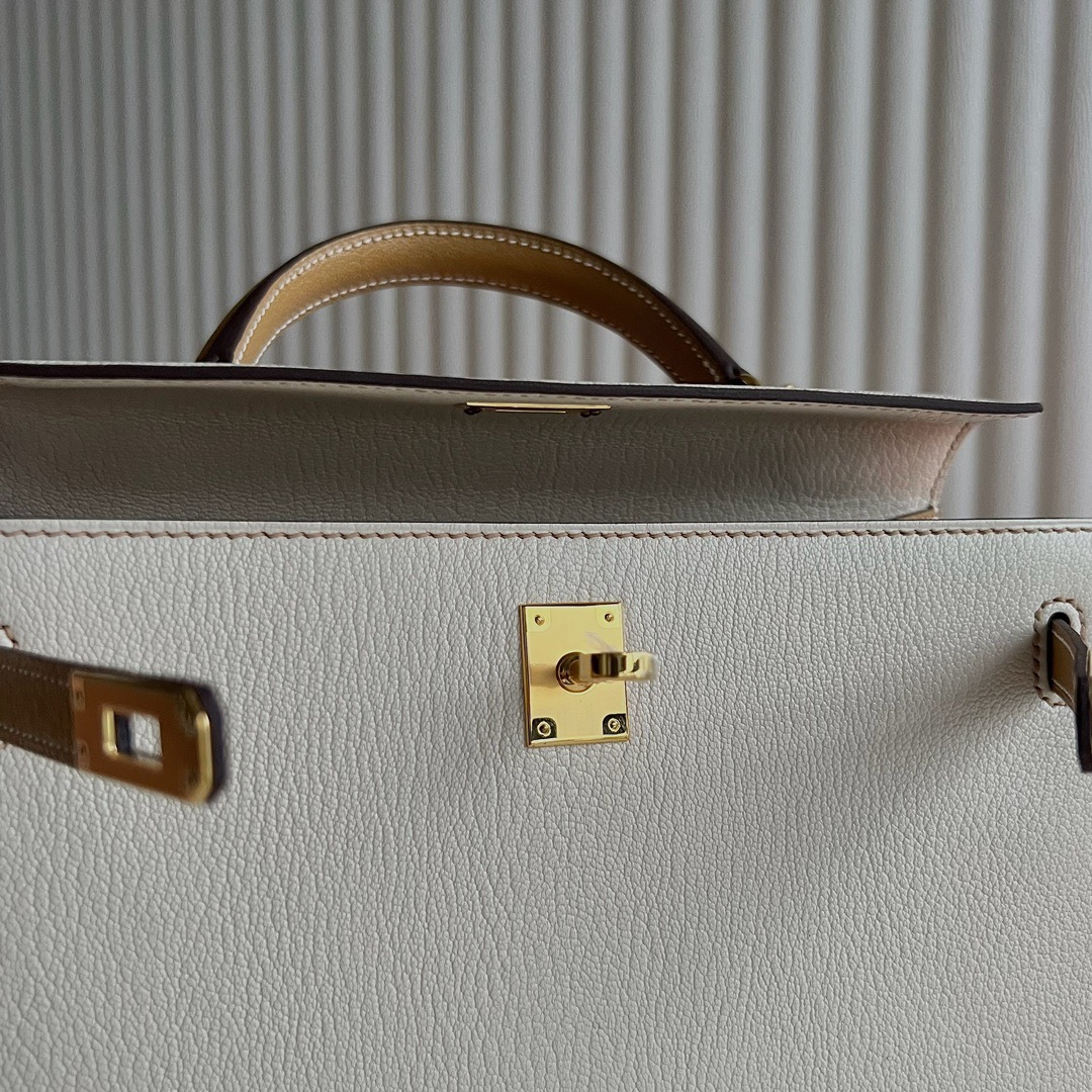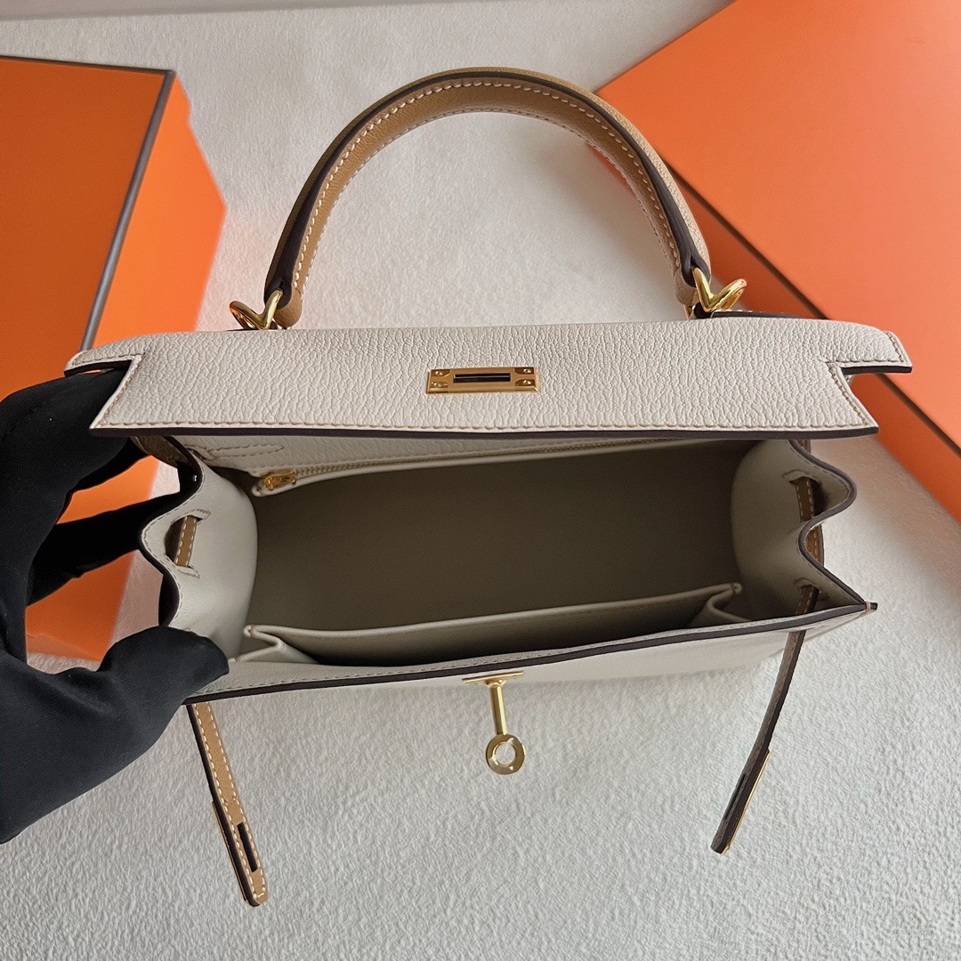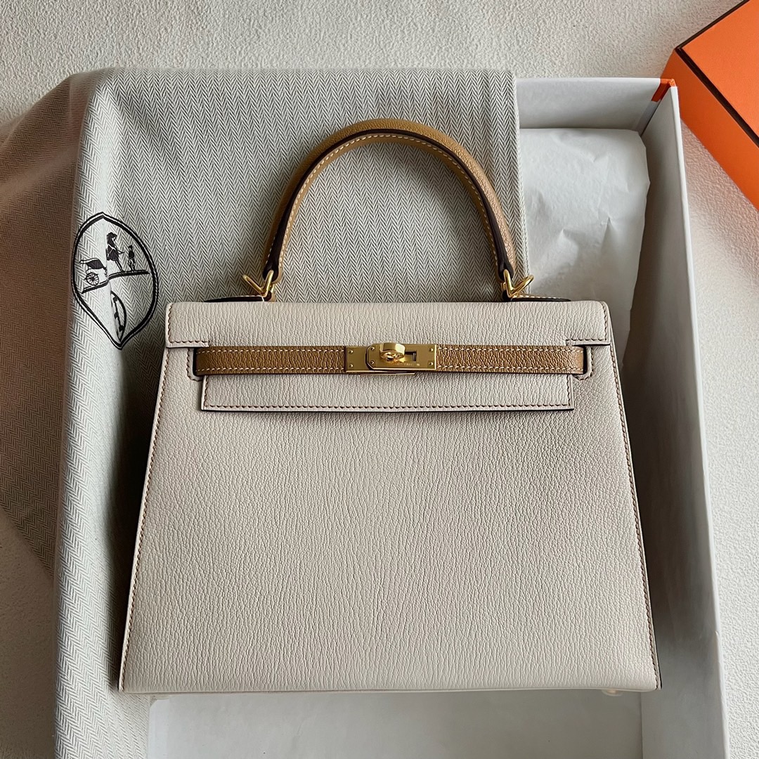 Hermès Special Order (HSS) Kelly 25cm Sellier Chevre Mysore CC10 Craie 奶昔白 And CC4B Biscuit 饼干色 Gold Hardware(GHW)