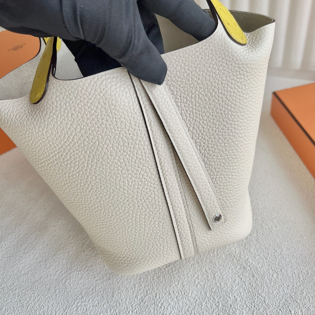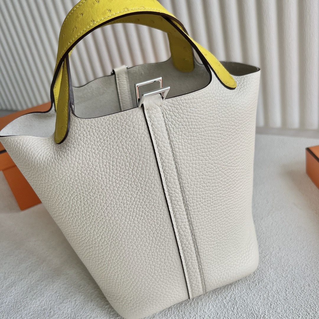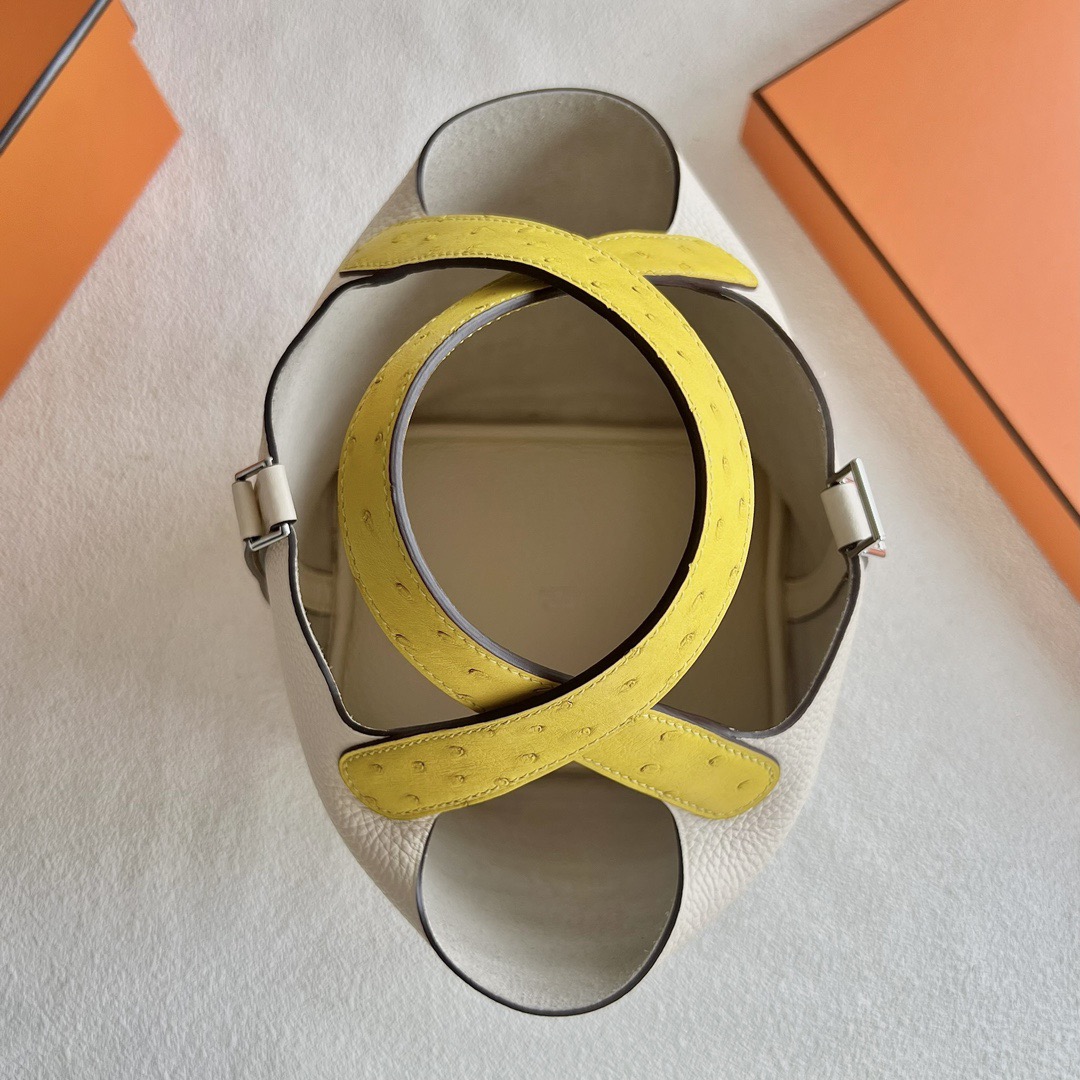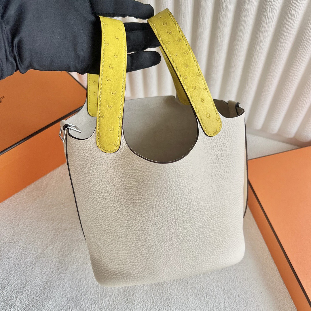 Hermès Picotin Lock 18cm Taurillon Clemence Original Leather from Germany I2 Nata 奶油白 And Ostrich 9N Citron 柠檬黄 Palladium Hardware(PHW)