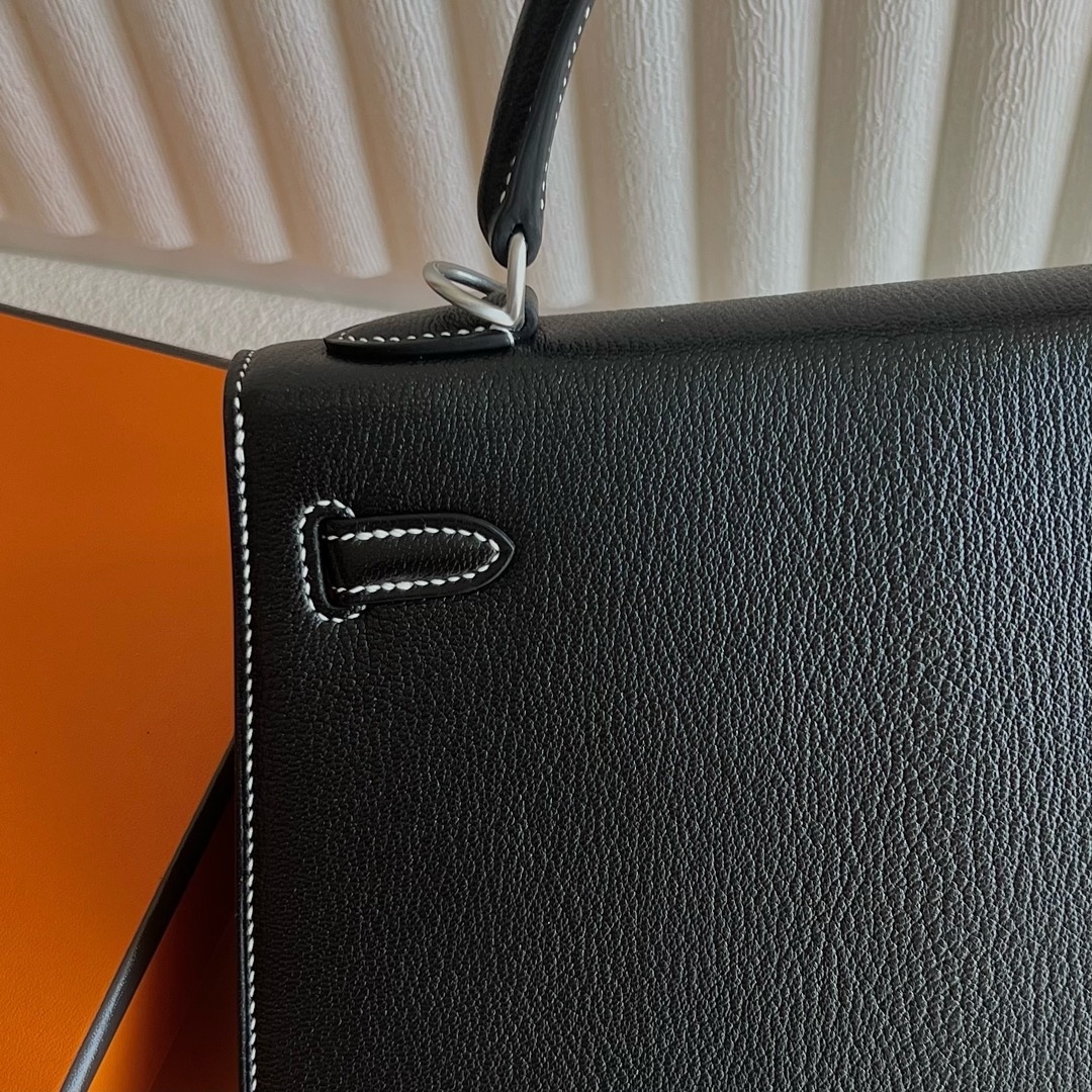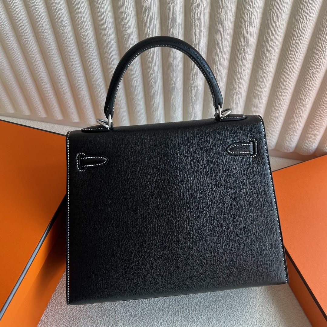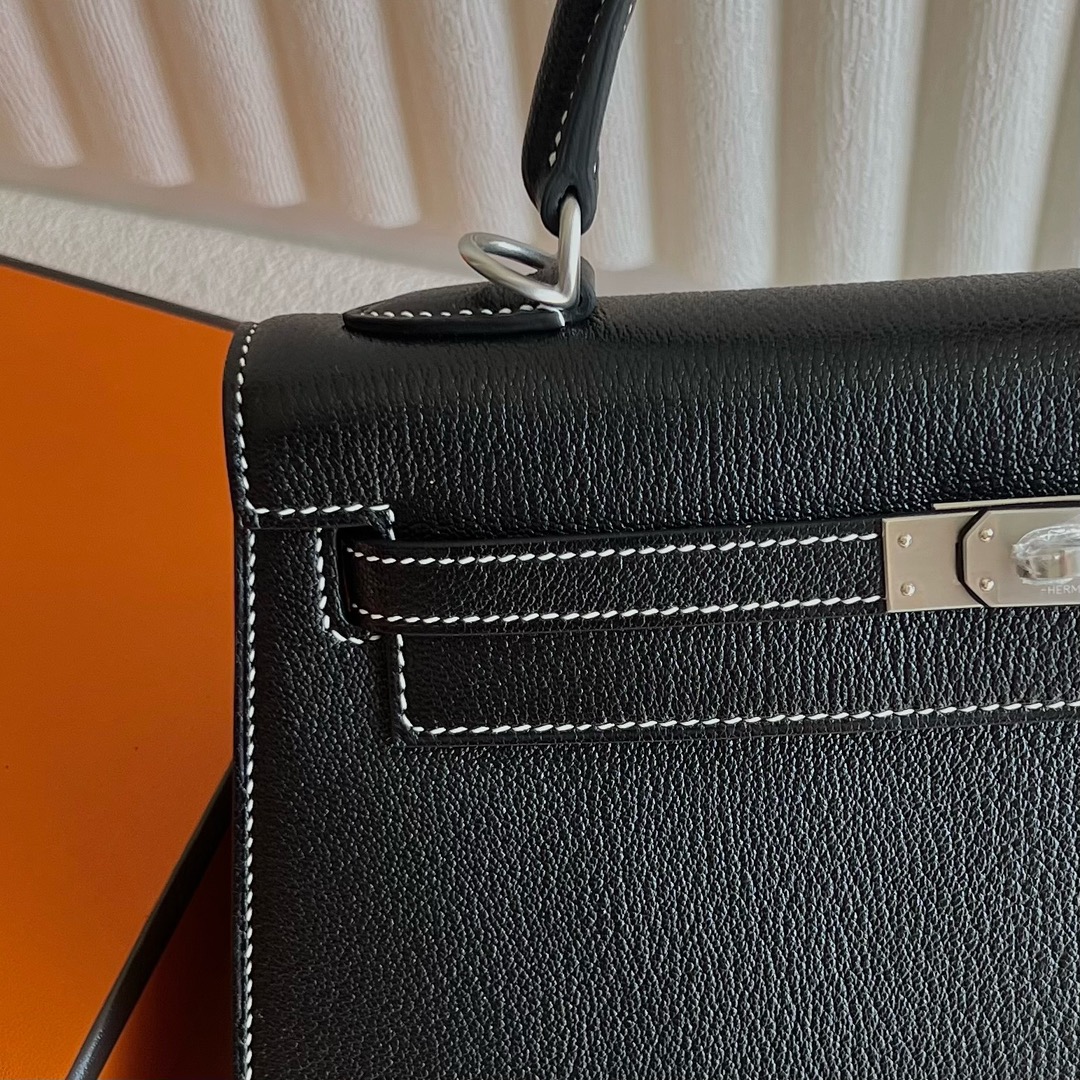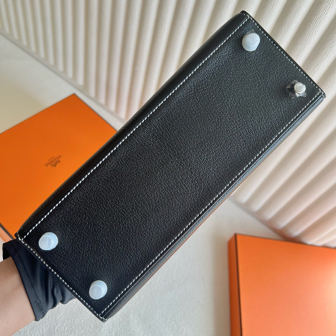 Hermès Special Order Kelly 25cm Chevre Mysore 89 Noir 黑色 And U4 Vert Vertigo 丝绒绿 Brushed Palladium Hardware(BPHW)