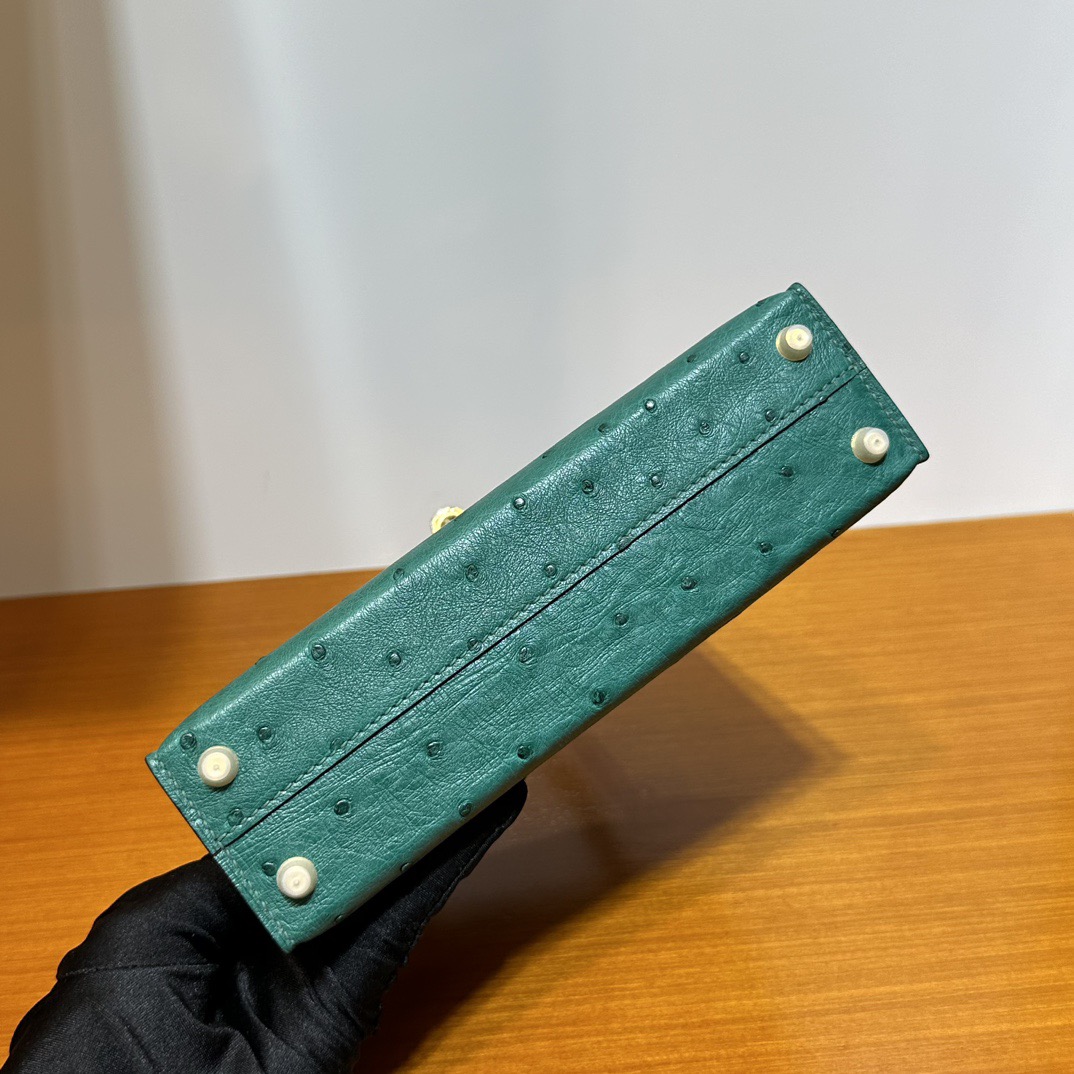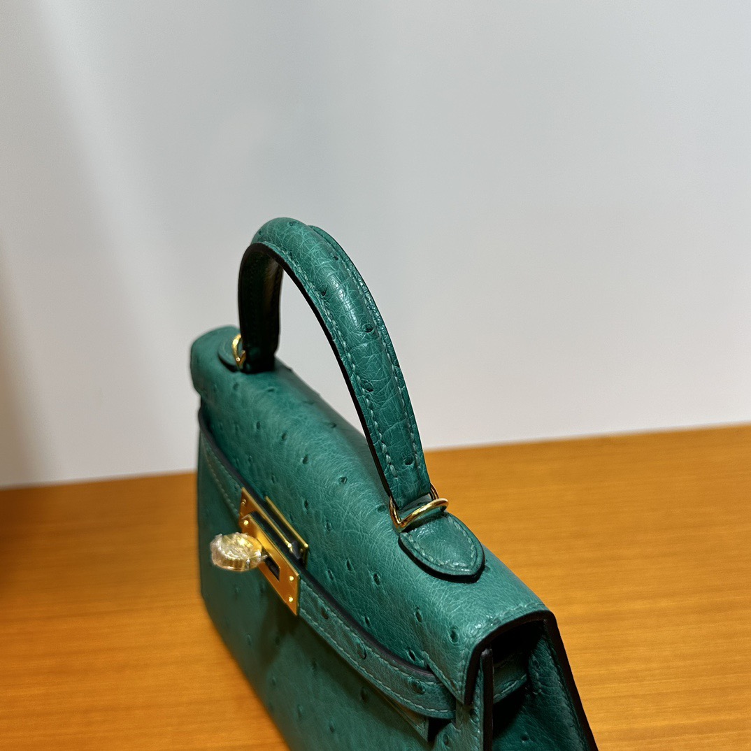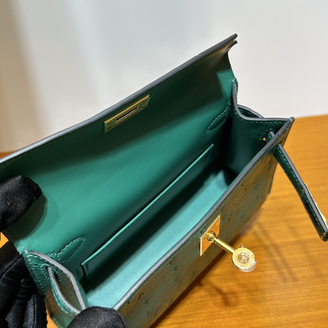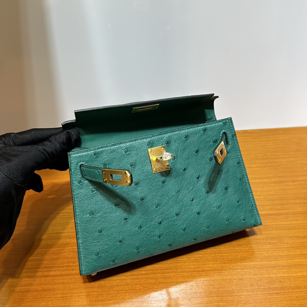 Hermès Kelly Mini Sellier South Africa Klein Karoo Original leather U4 Vert Vertigo 丝绒绿 Ostrich Gold Hardware(GHW)