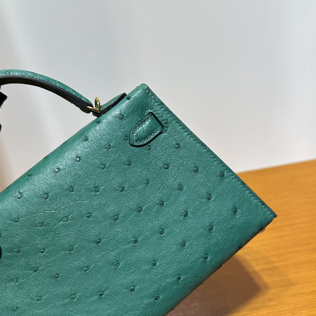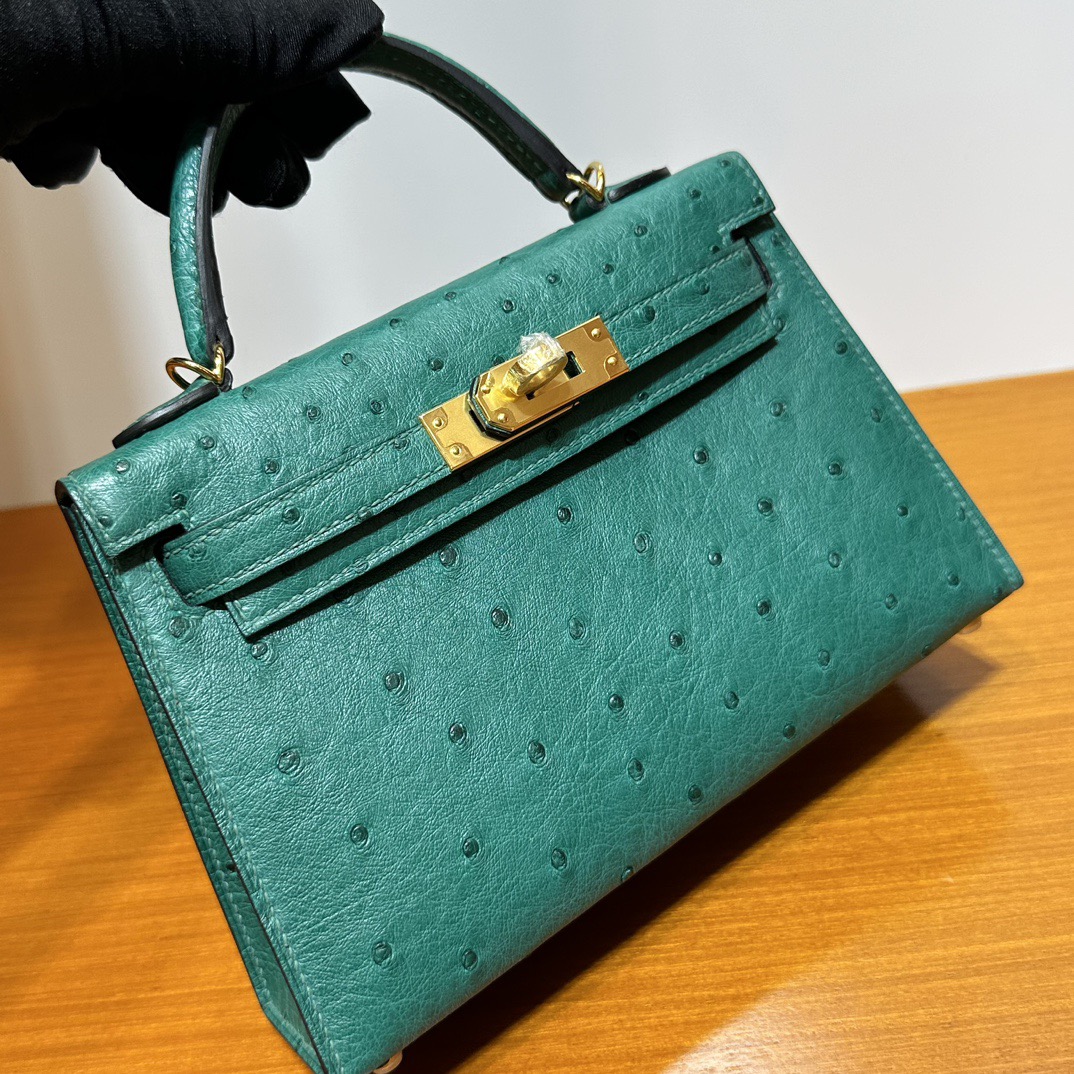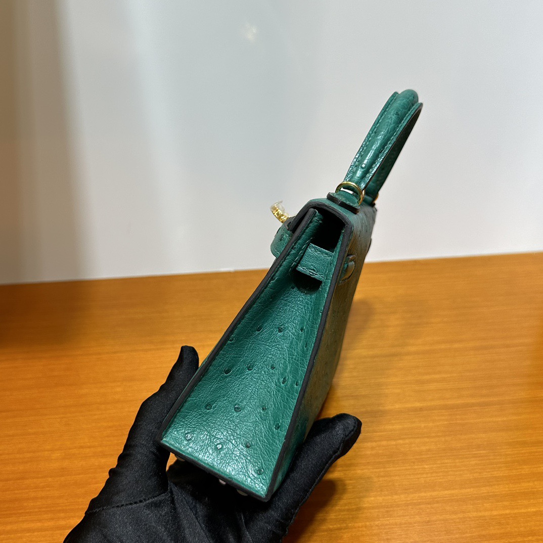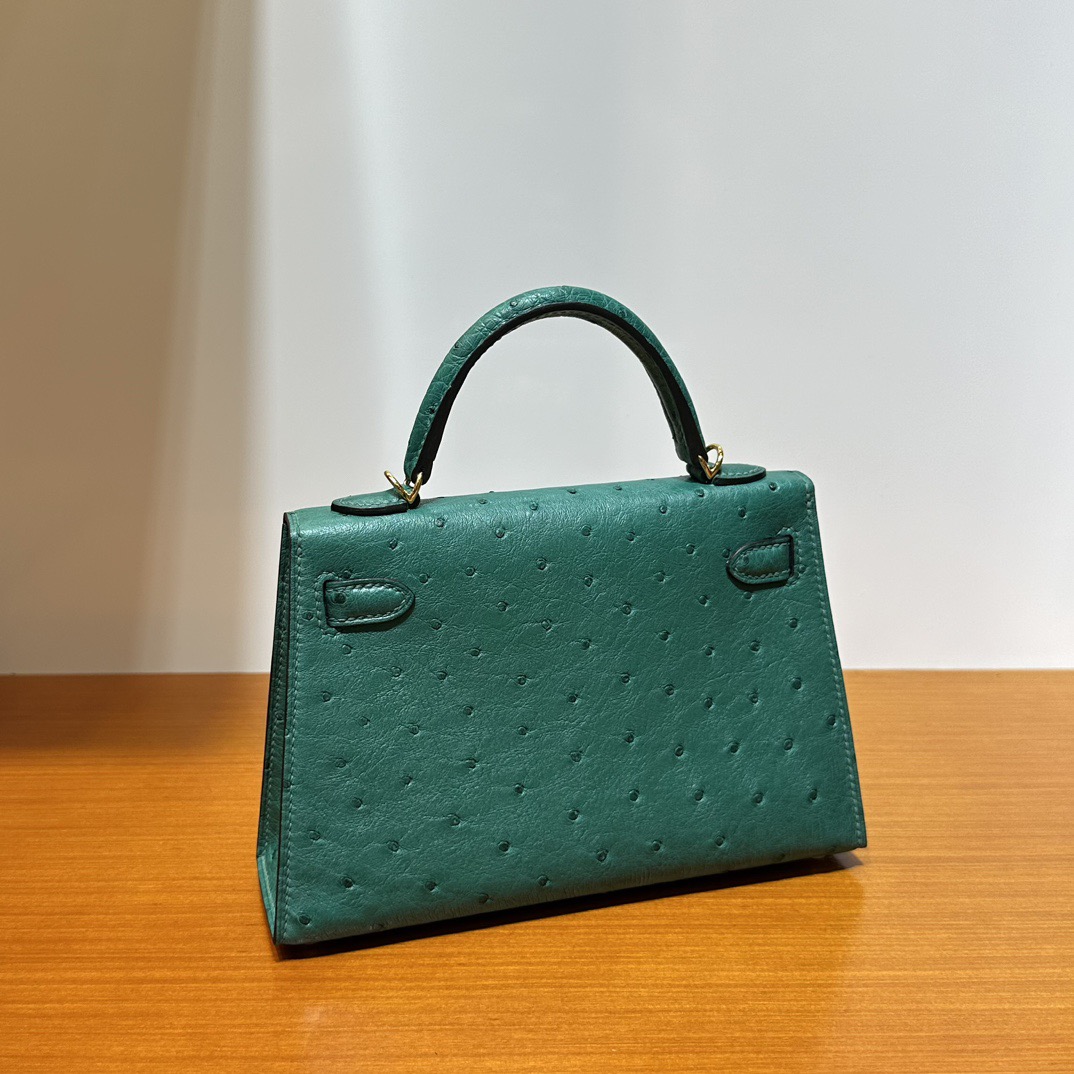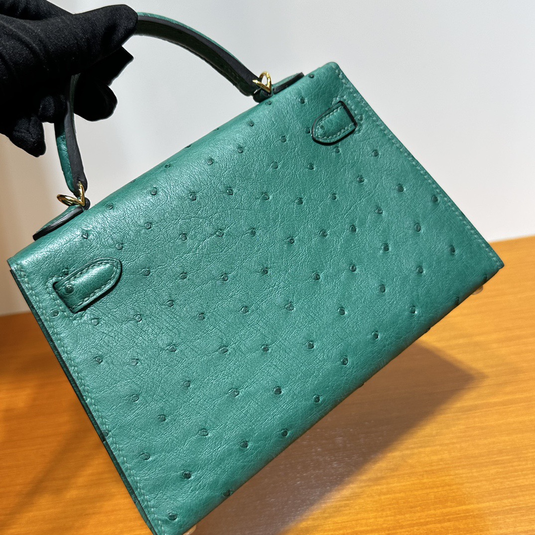 Hermès Kelly Mini Sellier South Africa Klein Karoo Original leather U4 Vert Vertigo 丝绒绿 Ostrich Gold Hardware(GHW)