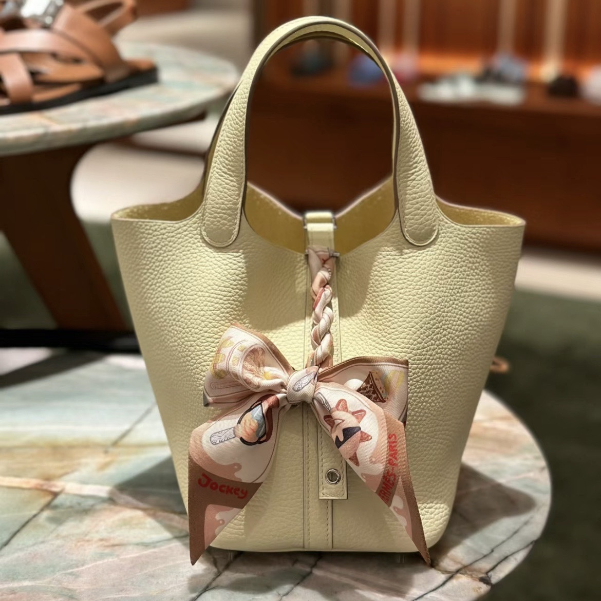 Welcome to shareHermès Birkin kelly Constance Lindy Bag » Hermès Picotin Lock 18 Taurillon Clemence 8Q Beige Marfa Palladium Hardware