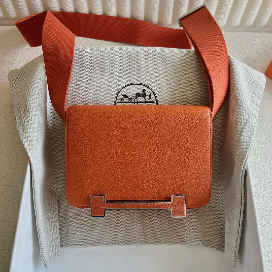 Welcome to shareHermès Birkin kelly Constance Lindy Bag » Hermès Geta Bag 20 Chevre Mysore CK93 Orange Palladium Hardware