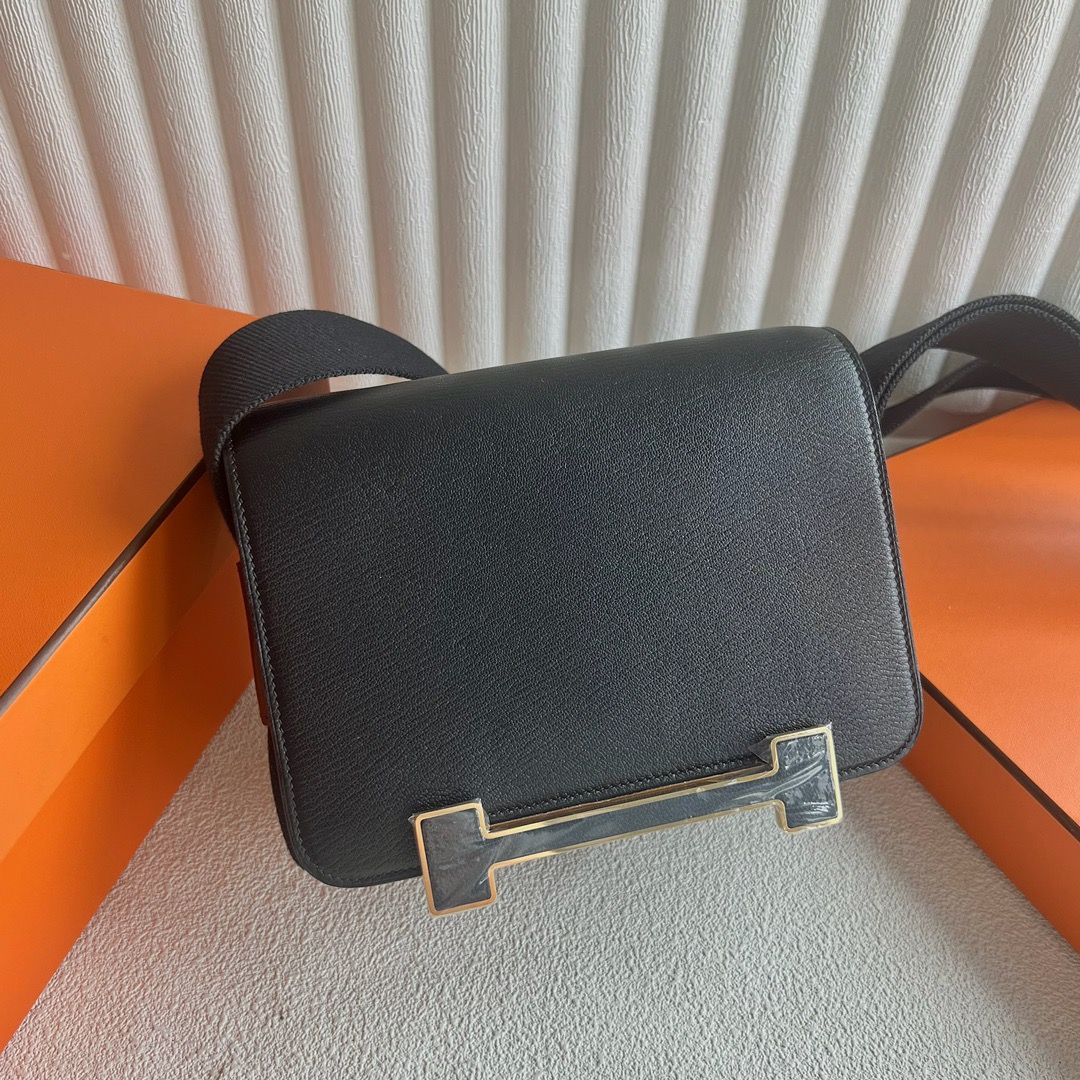 Hermès Geta Bag Chevre Mysore CC89 Noir Gold Hardware Stamp W