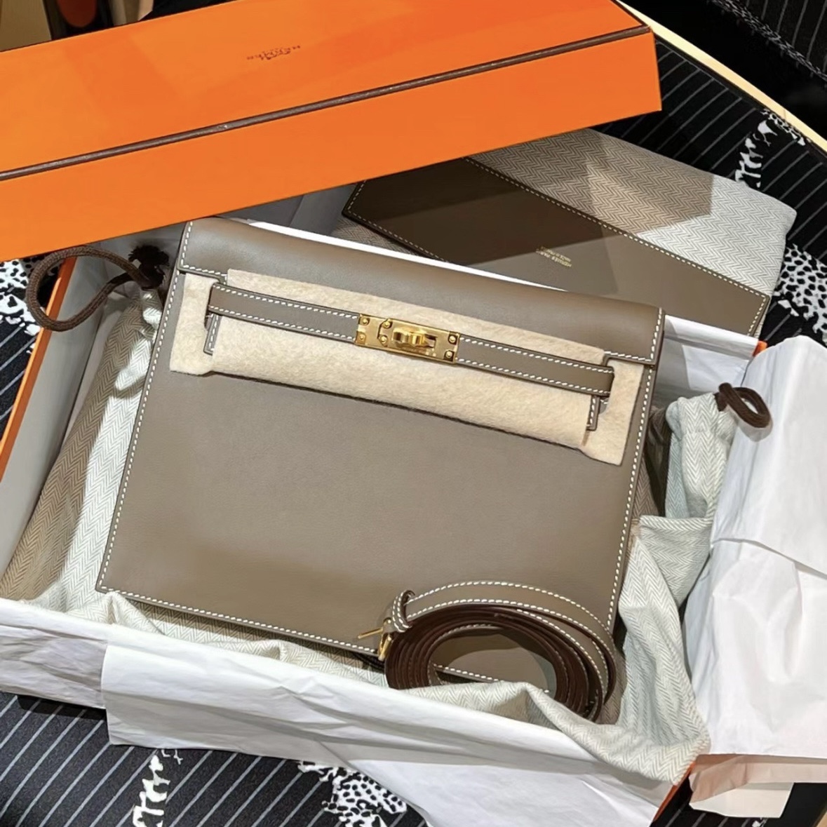 Hermès Kelly Danse Swift Leather CC18 Etoupe Gold Hardware
