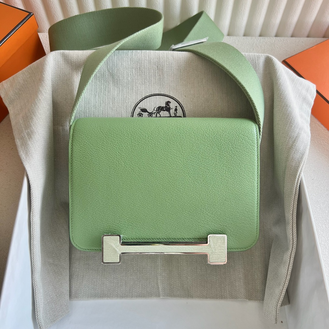 Hermès Geta Bag 20cm Chevre Mysore 3I Vert Croquet 牛油果绿 0S Vert Fizz 气泡绿 Palladium Hardware(PHW)