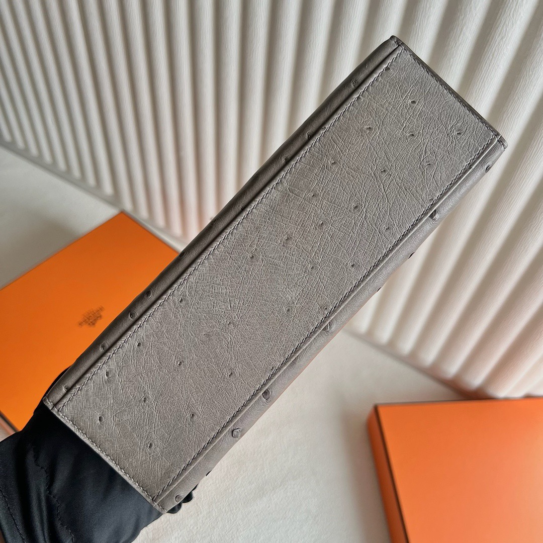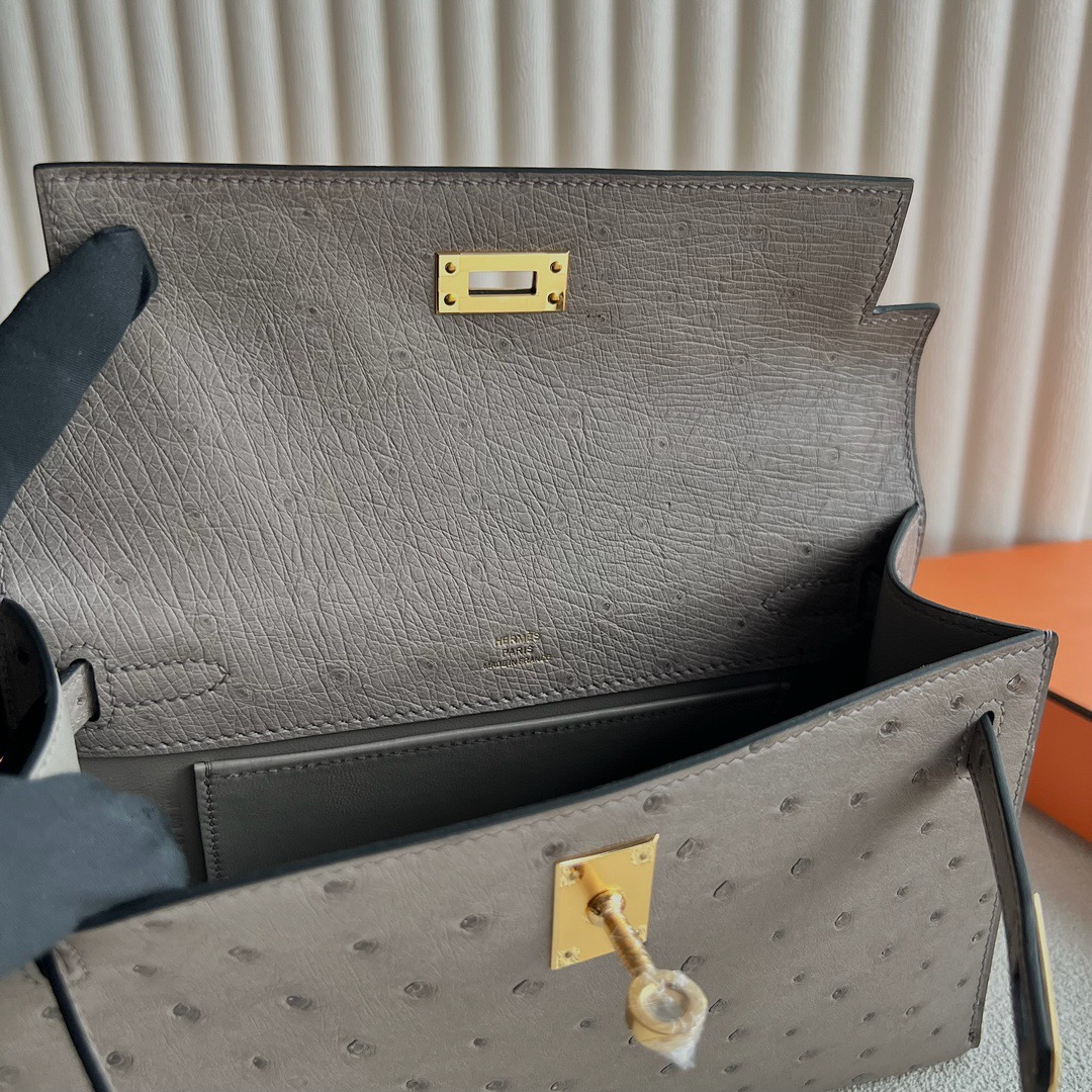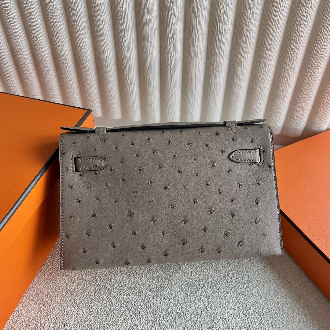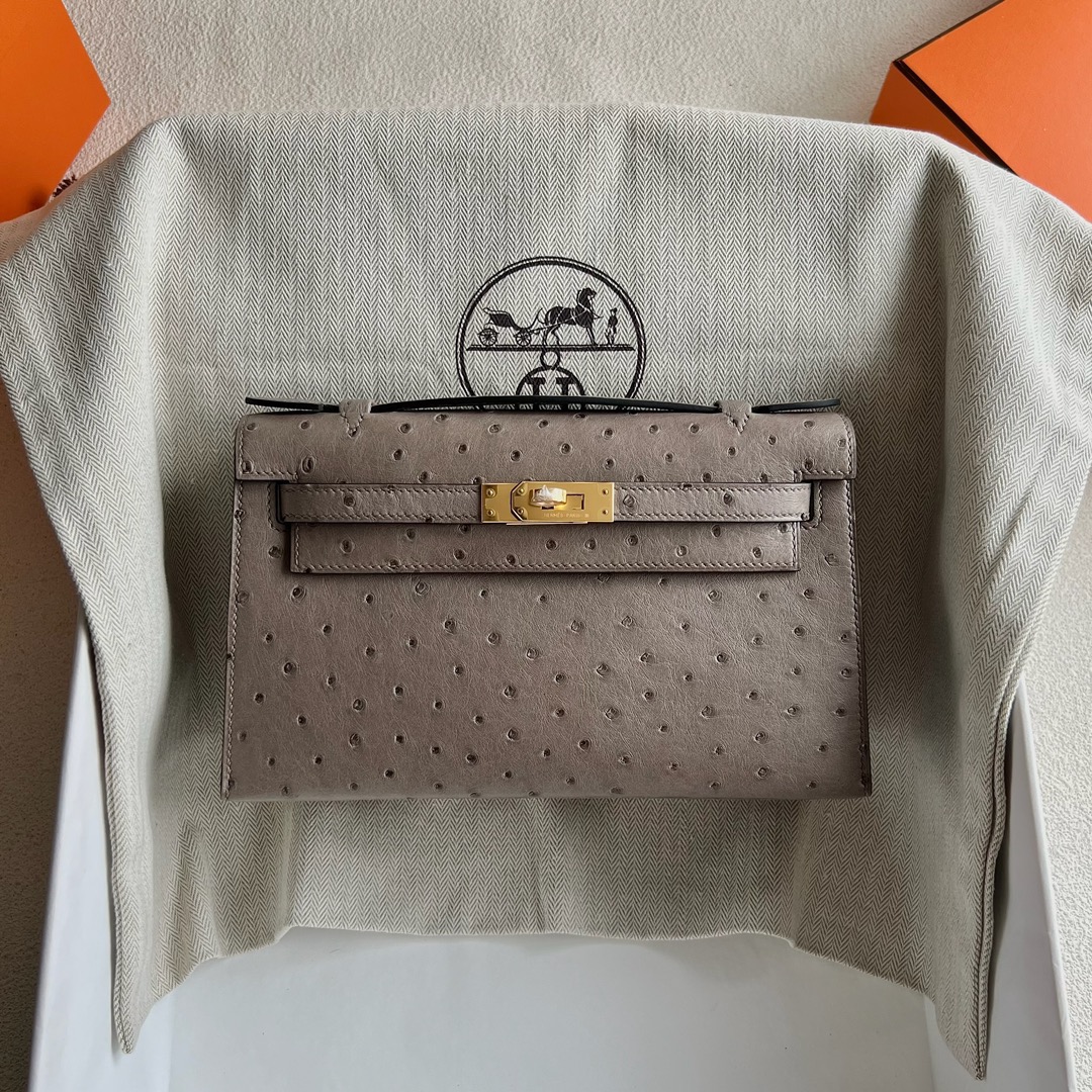 Hermès Mini Kelly Pochette 22cm South Africa Klein Karoo Original Leather Ostrich 81 Gris Tourterelle 斑鸠灰 Gold Hardware(GHW)