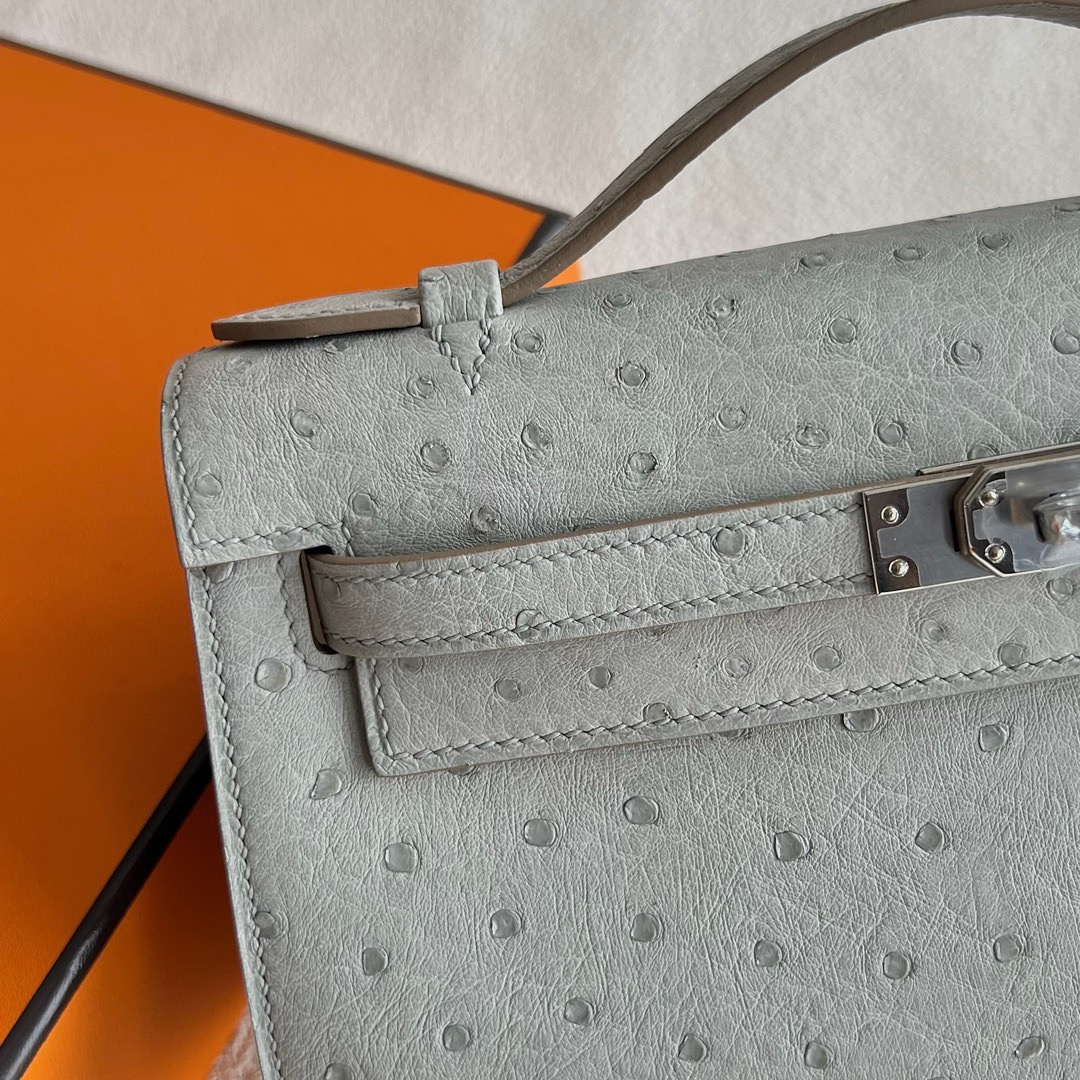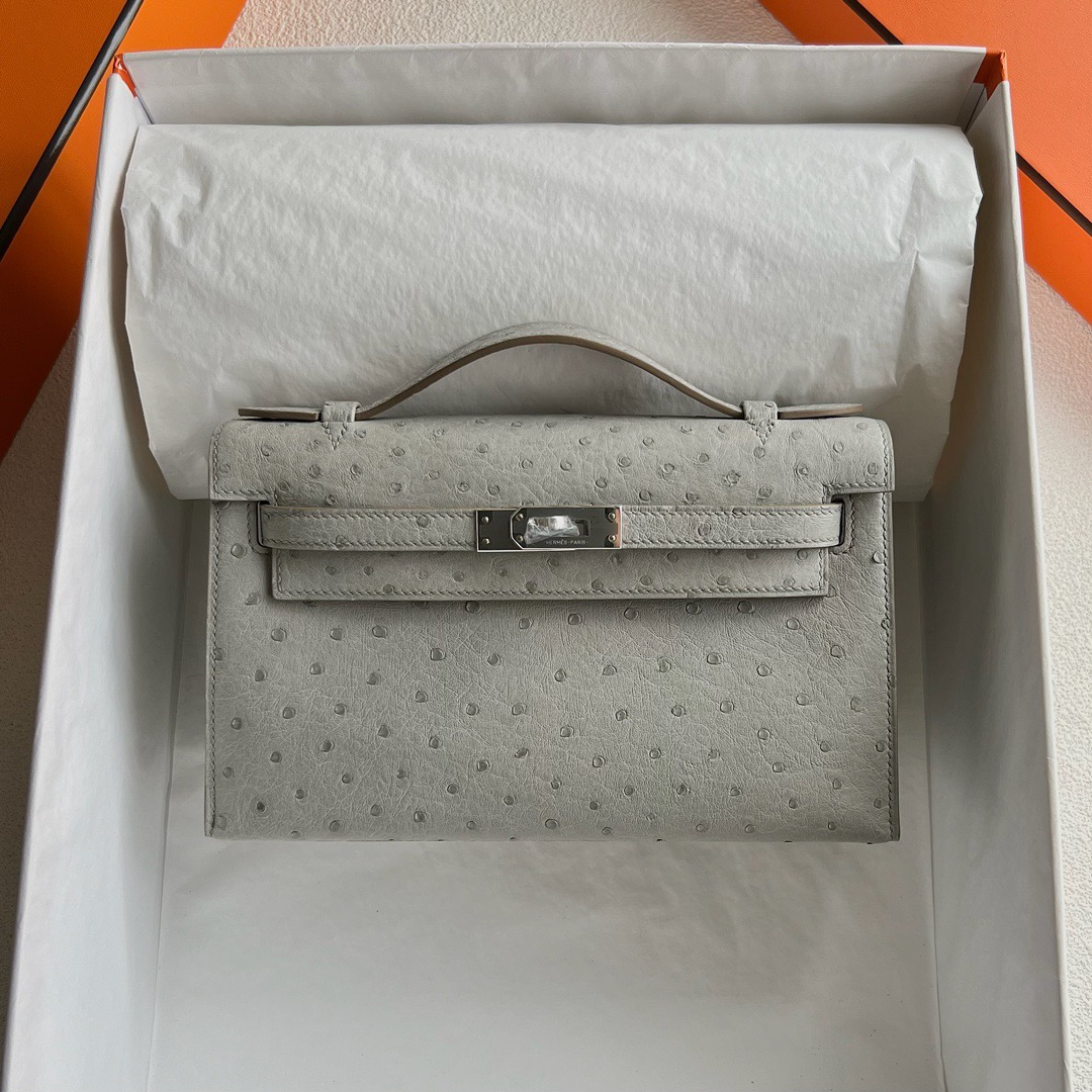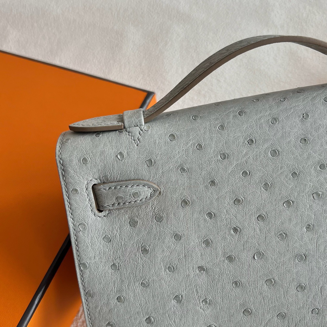 Hermès Mini Kelly Pochette 22cm South Africa Klein Karoo Original Leather Ostrich CK80 Griss Perle 珍珠灰 Palladium Hardware(PHW)