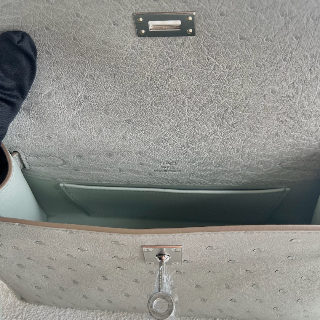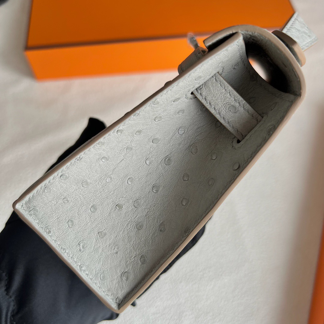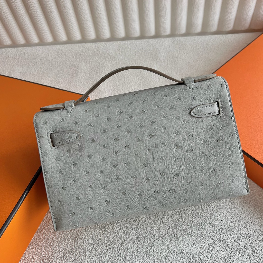 Hermès Mini Kelly Pochette 22cm South Africa Klein Karoo Original Leather Ostrich CK80 Griss Perle 珍珠灰 Palladium Hardware(PHW)