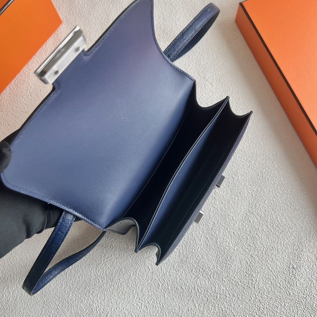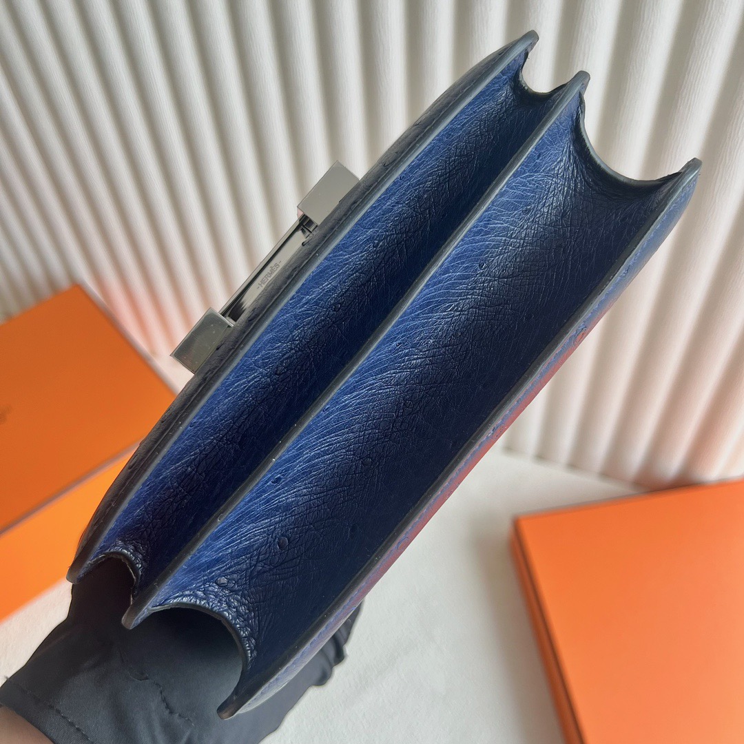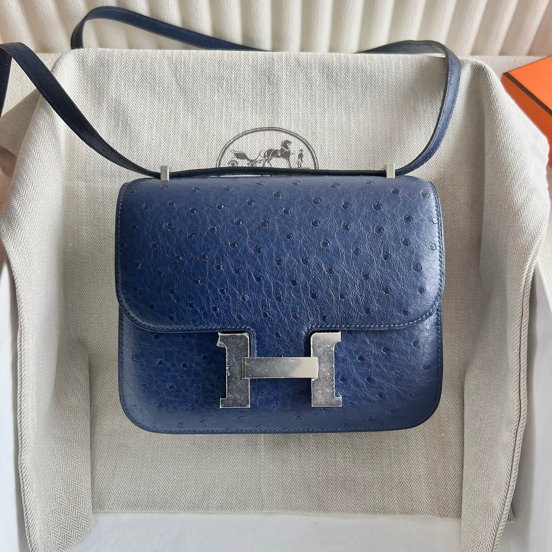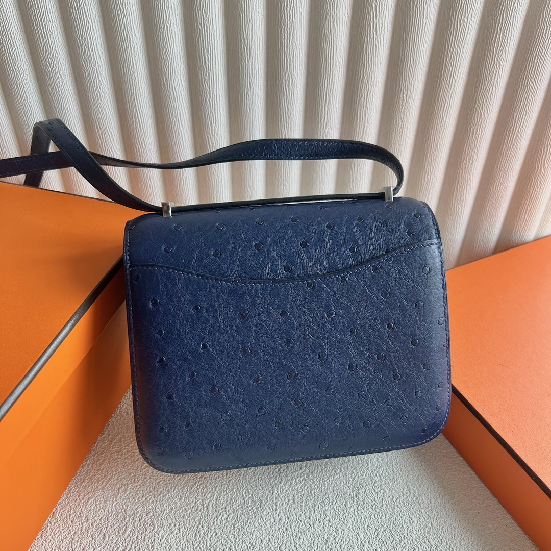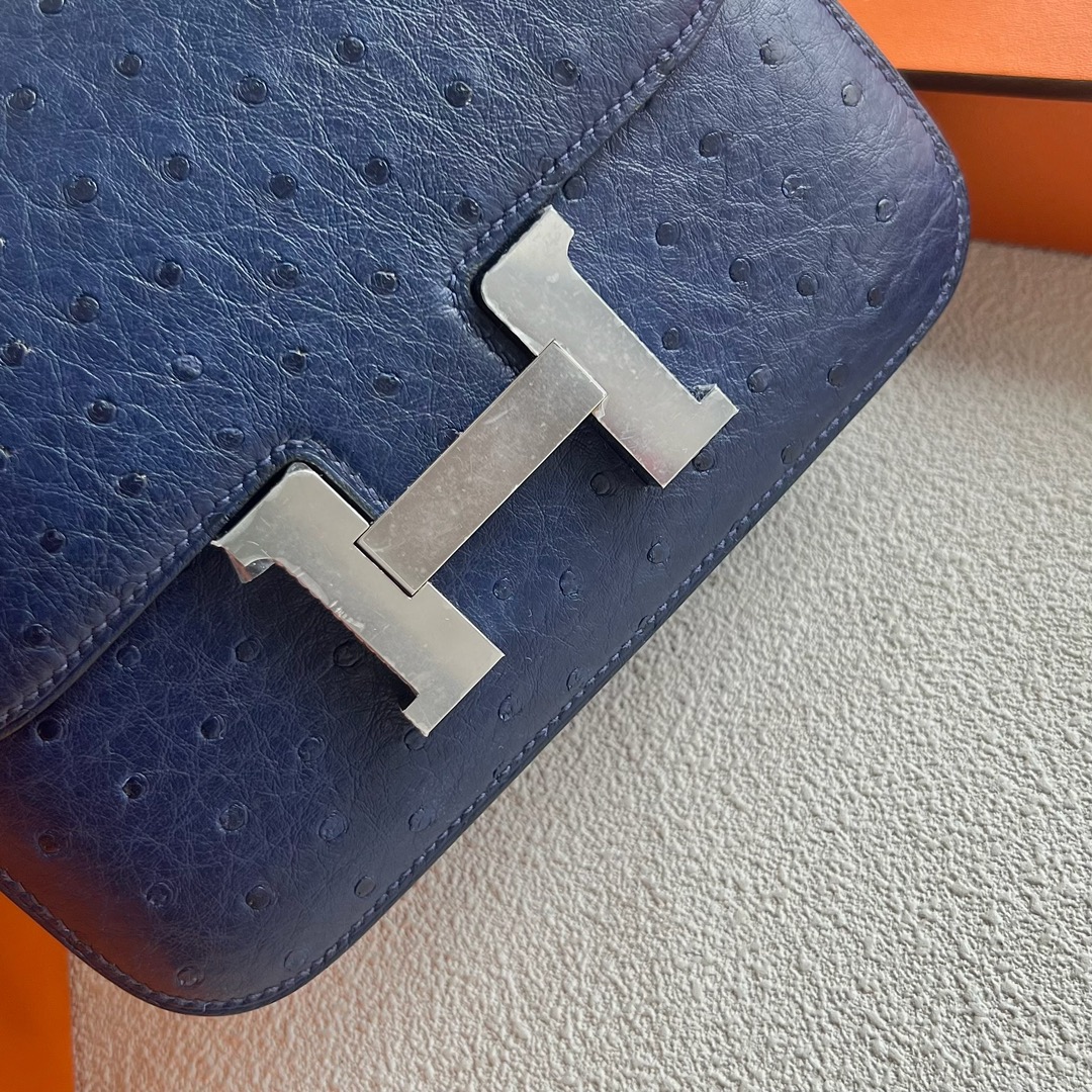 Hermès Constance 18cm Ostrich Leather CK73 Blue Sapphire 宝石蓝 Palladium Hardware(PHW)