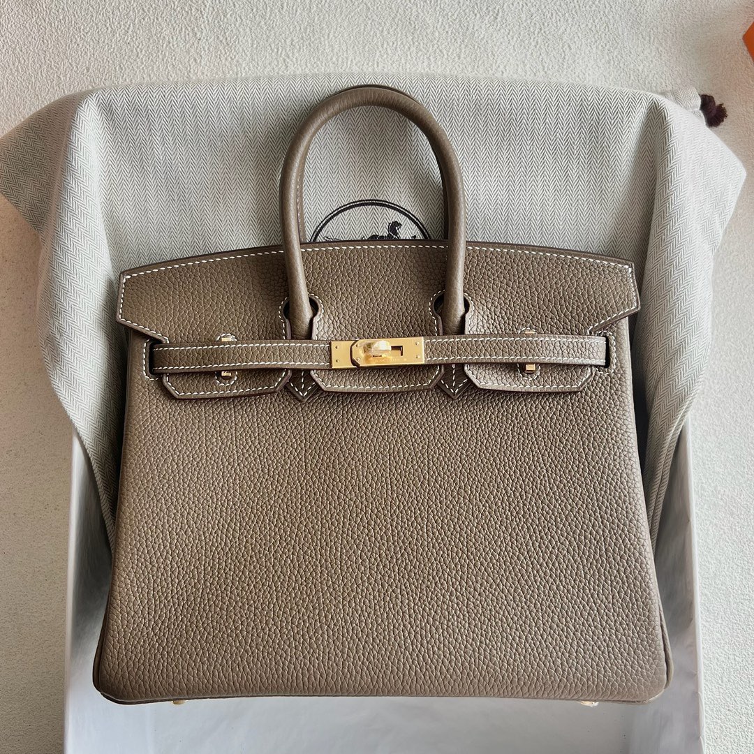 Hermès Birkin 25cm Togo Original Leather from Germany Cow neck stripe leather 颈纹皮 Ck18 Etoupe 大象灰 Gold Hardware(GHW)