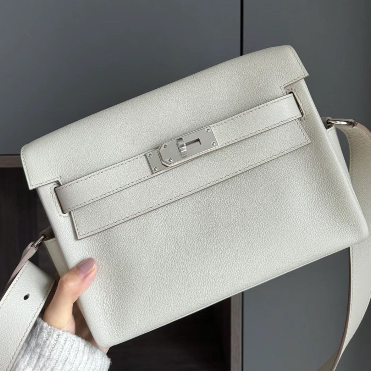Hermès Kelly Messenger 25cm 邮差包 8L Béton 冰川白 Palladium Hardware(PHW)