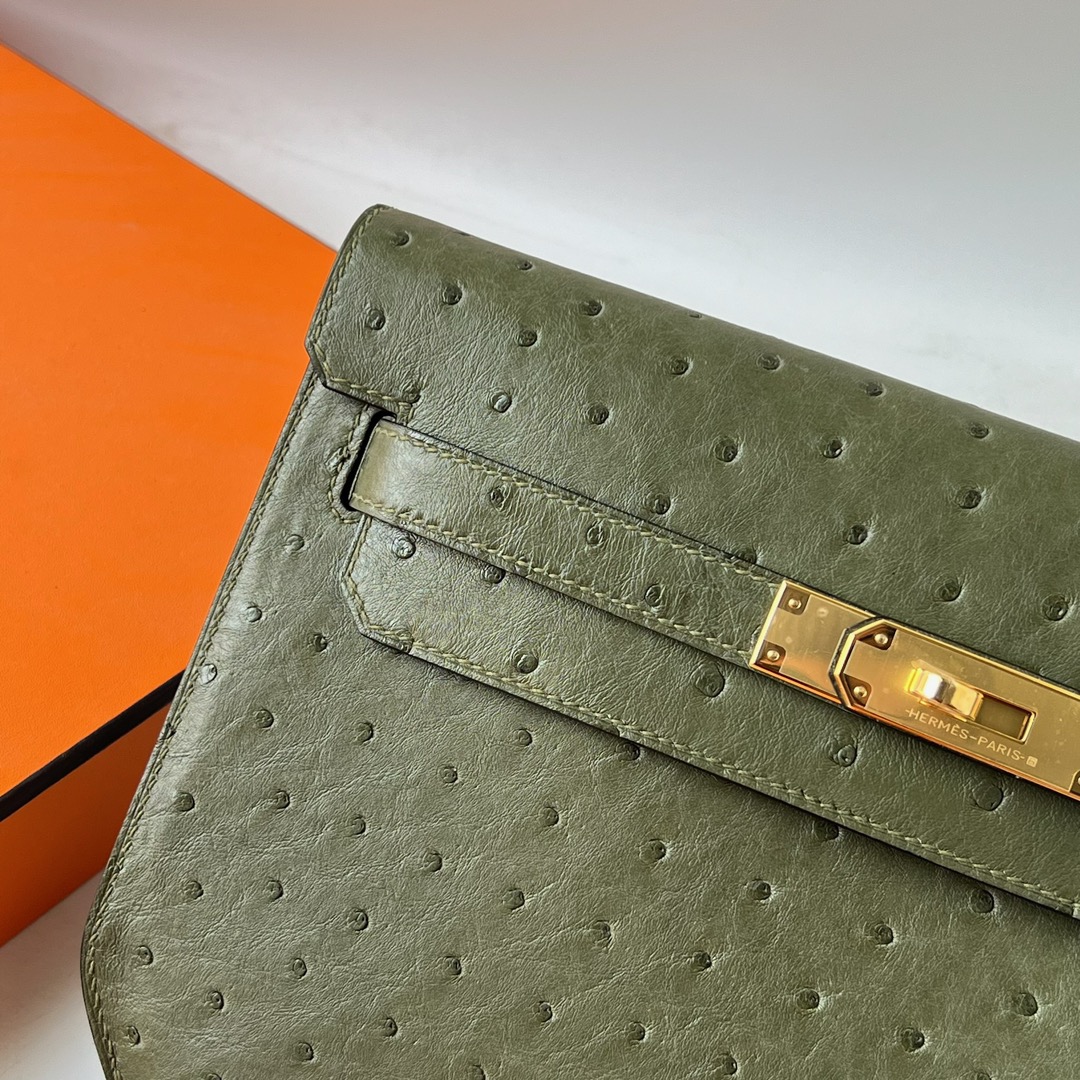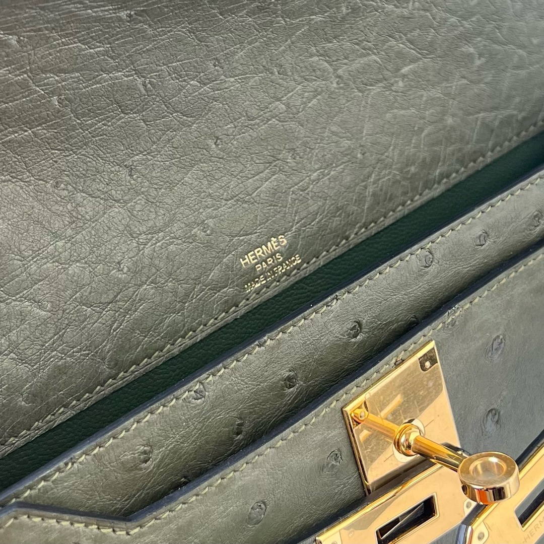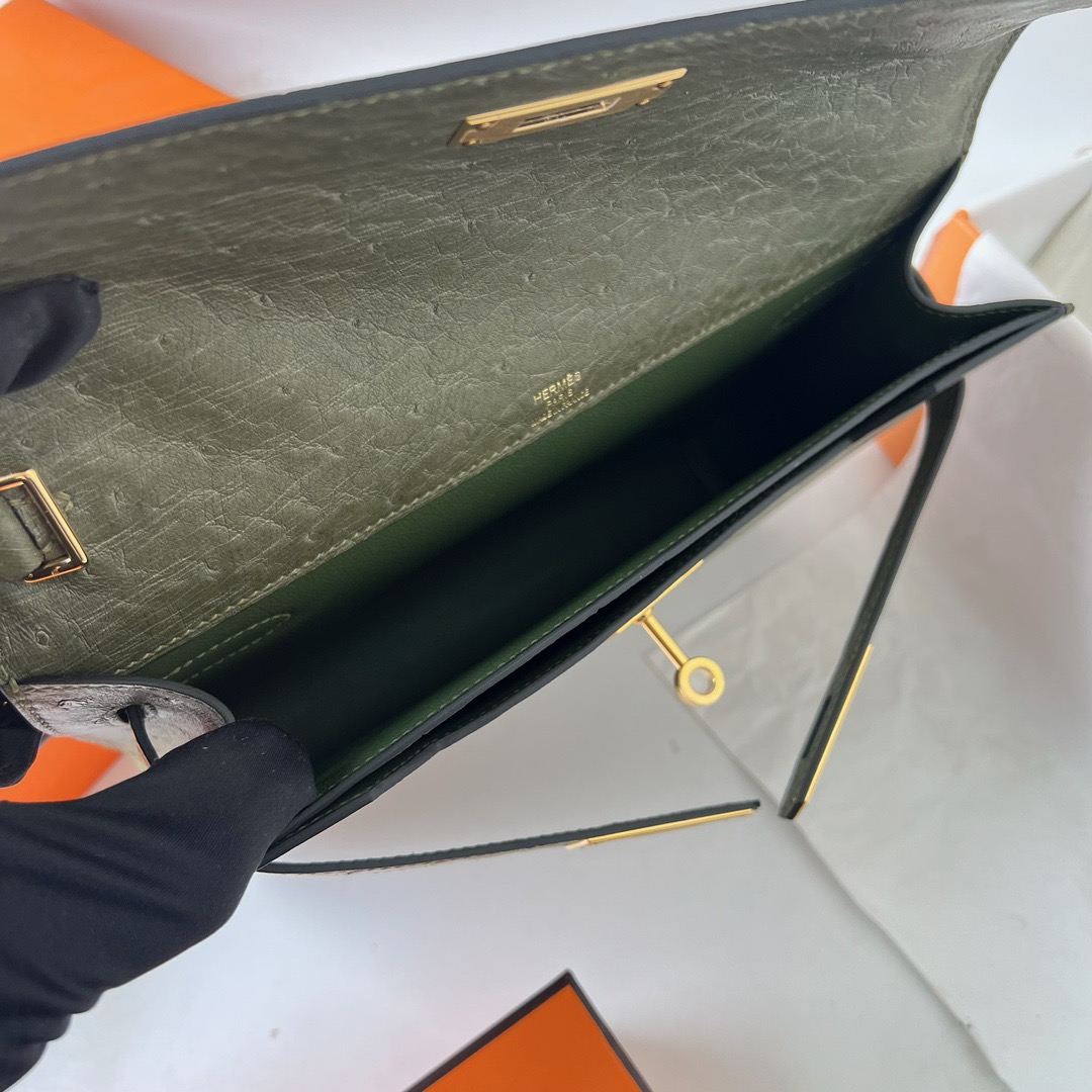 Hermès Kelly Depeches 25cm South Africa Klein Karoo Original leather Ostrich V6 Canopee 丛林绿 Gold Hardware(GHW)