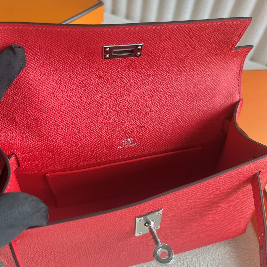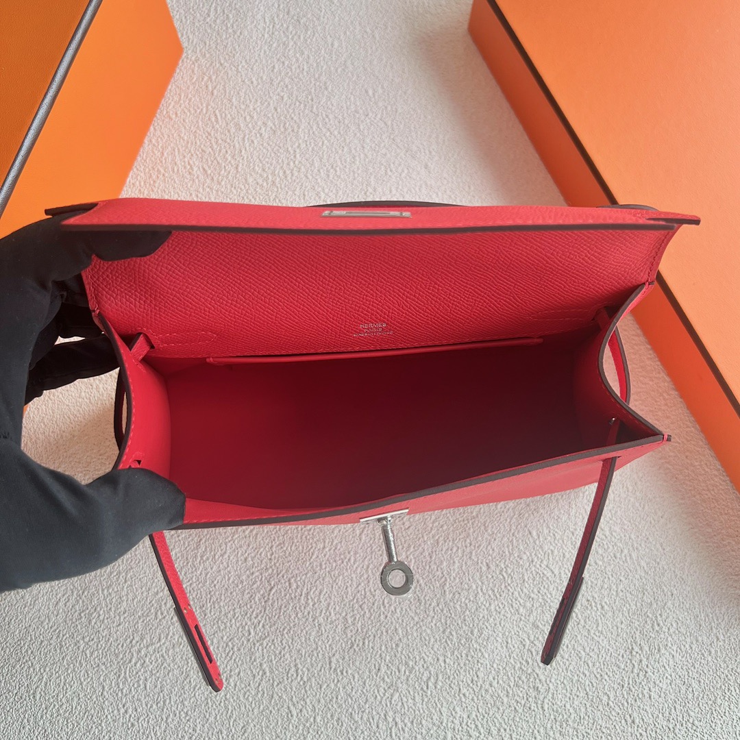 Hermès Mini Kelly Pochette 22cm Epsom Leather S5 Rouge tomate 番茄红 Palladium Hardware(PHW)