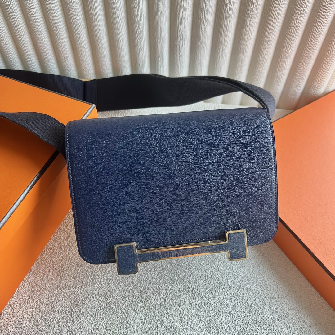 Hermès Geta Bag Chevre Mysore Leather CK73 Bleu Sapphire Gold Hardware