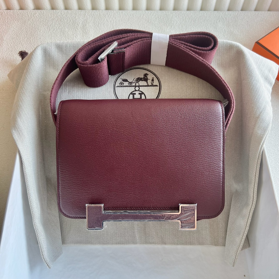 Hermès Geta Bag Chevre Mysore CK57 Bordeaux Palladium Hardware