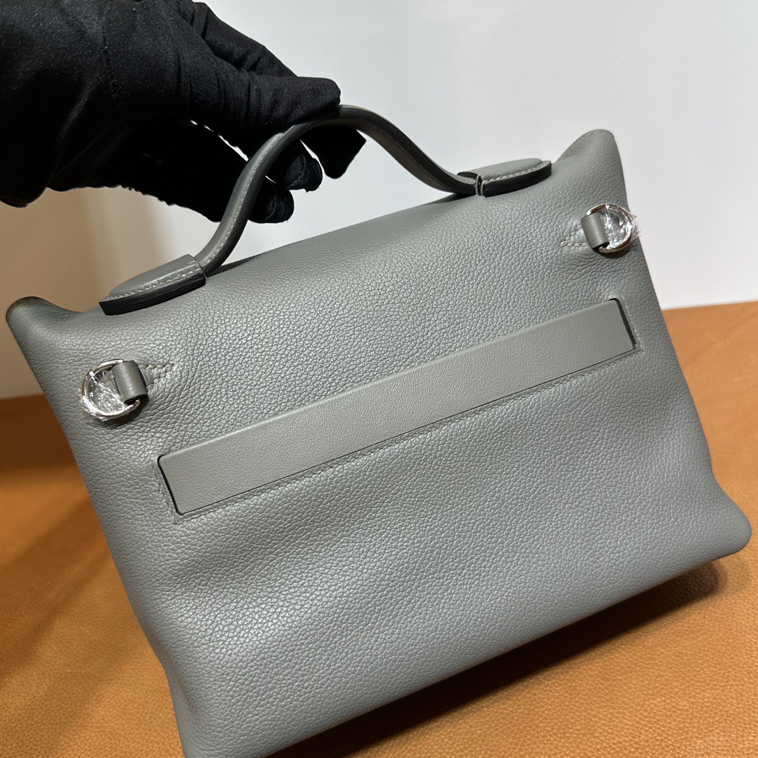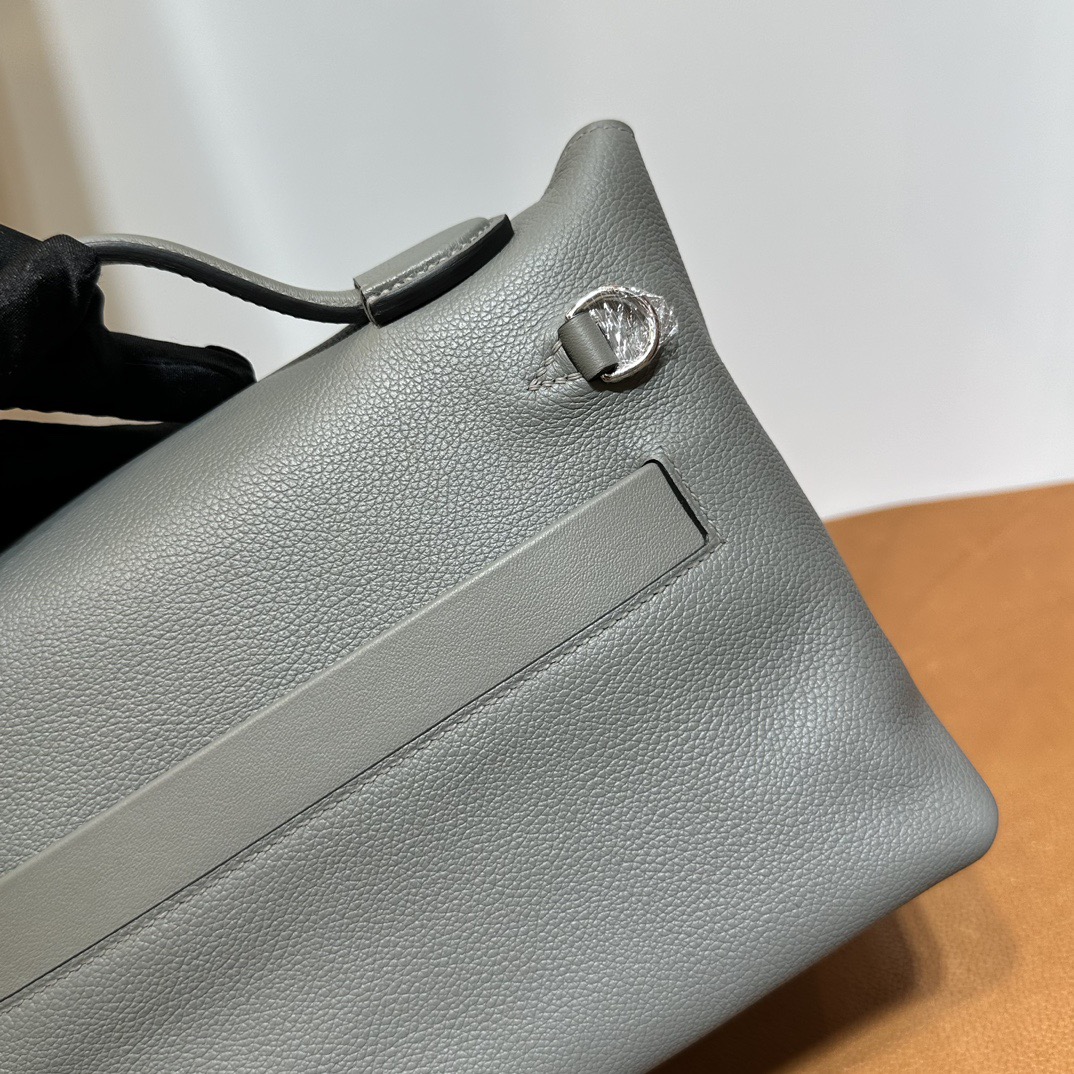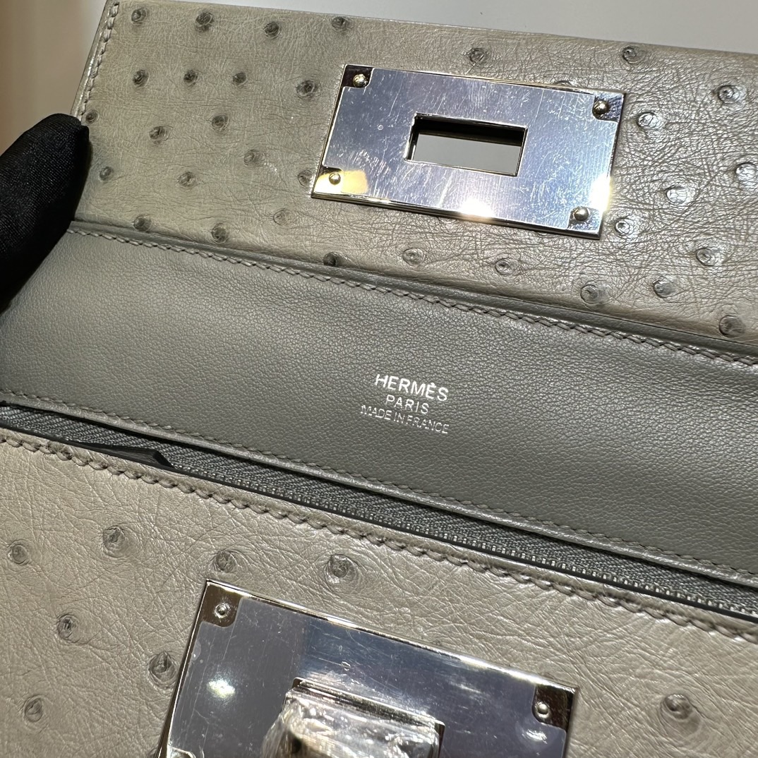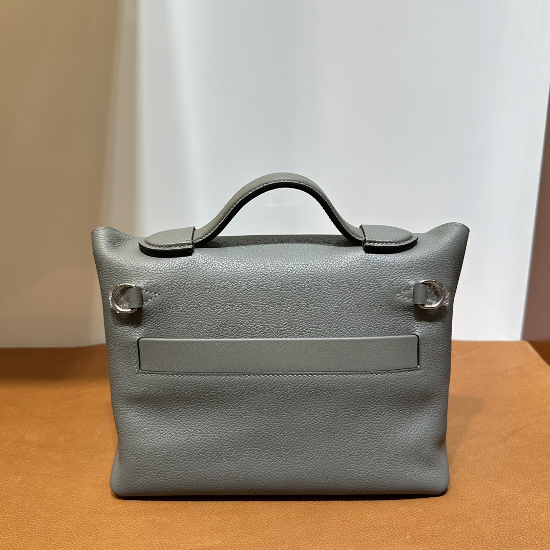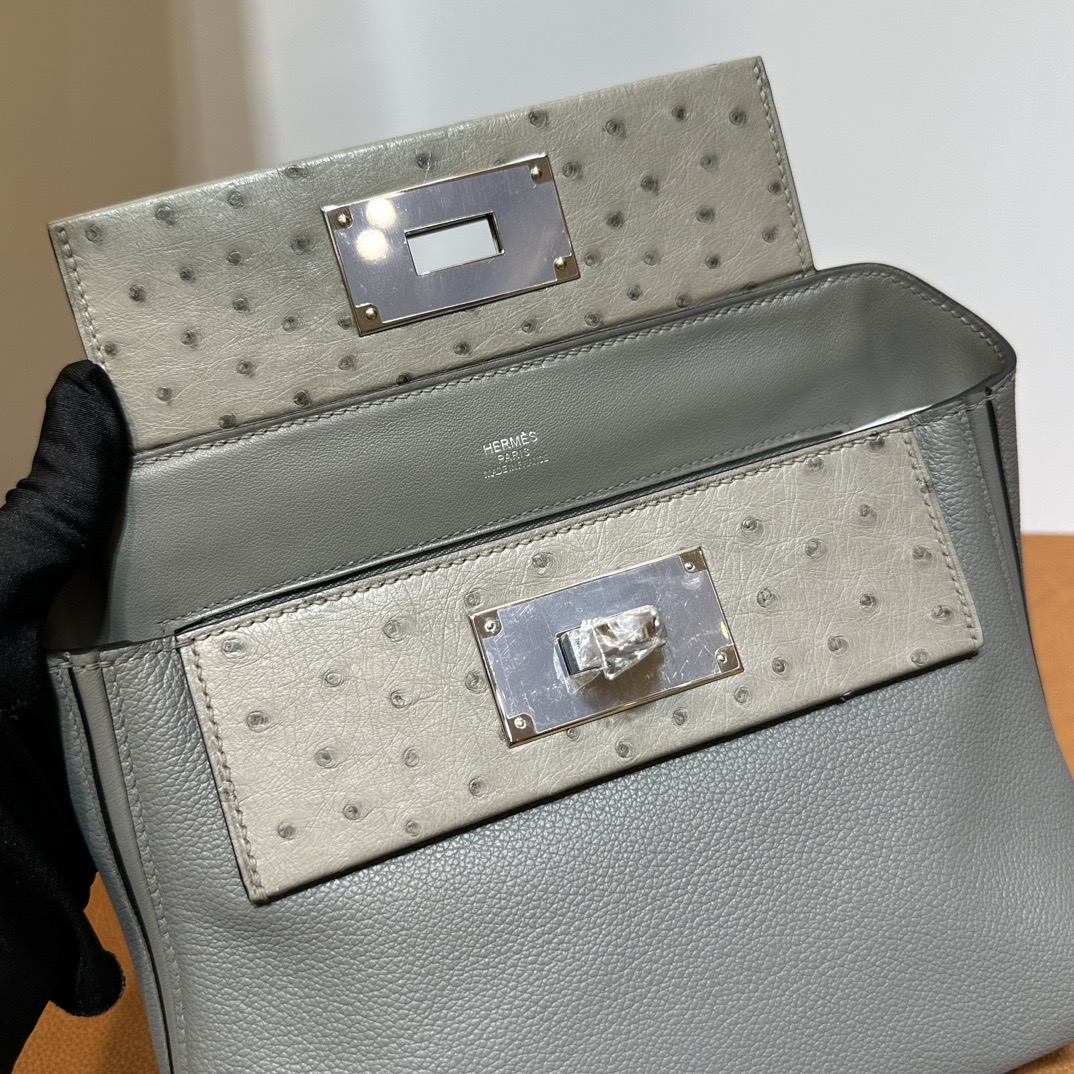 Hermès Mini 24 24 Touch 21cm Evercolor Leather And Ostrich 0L Gris Meyer 积雨云灰 Palladium Hardware(PHW)
