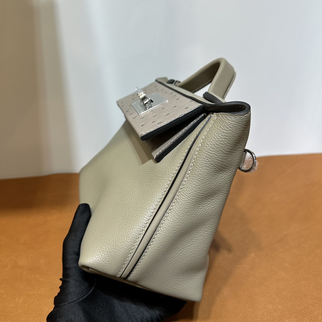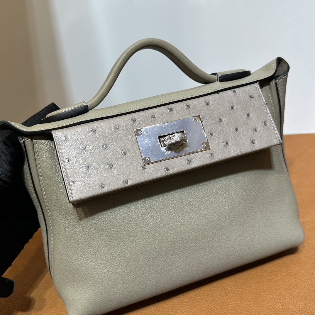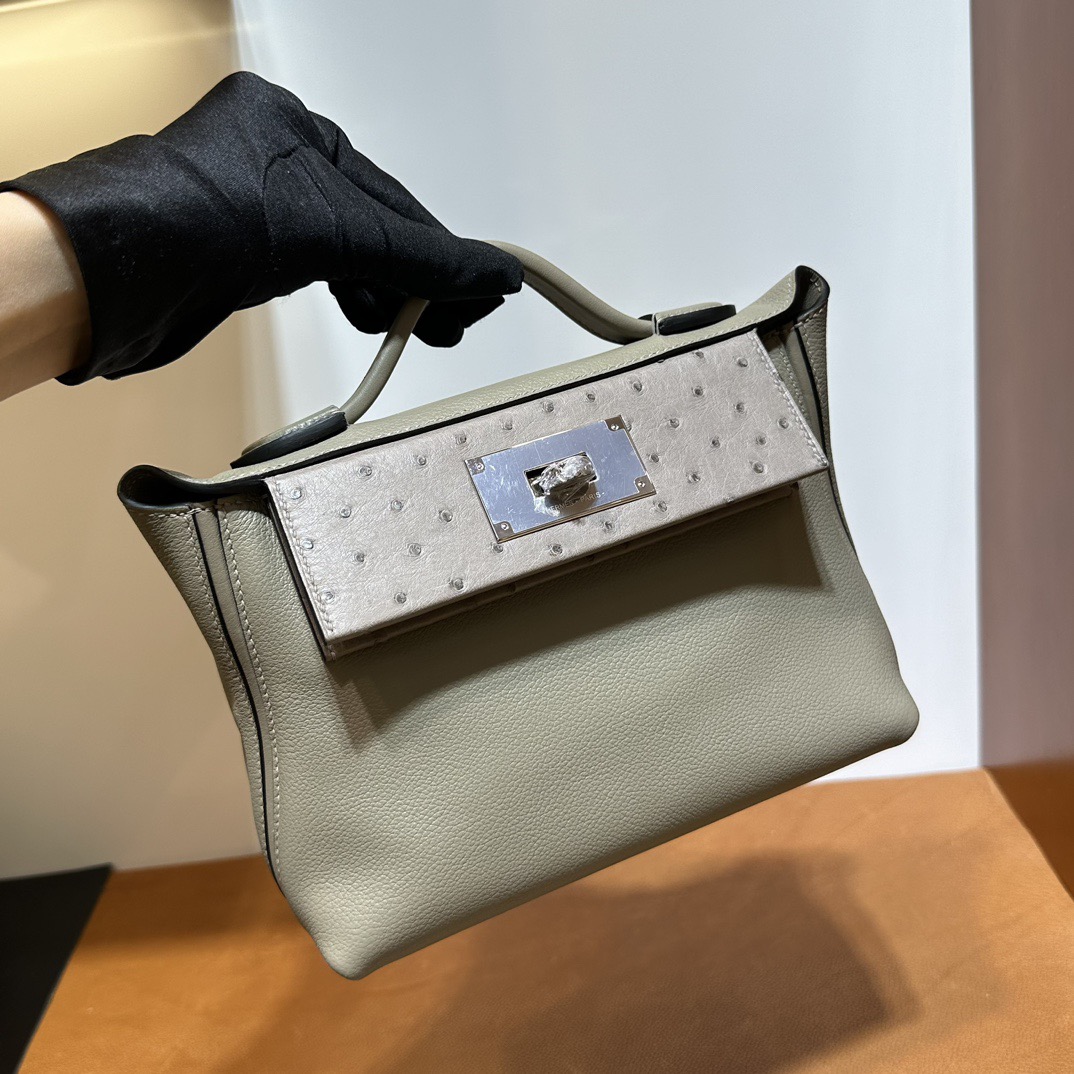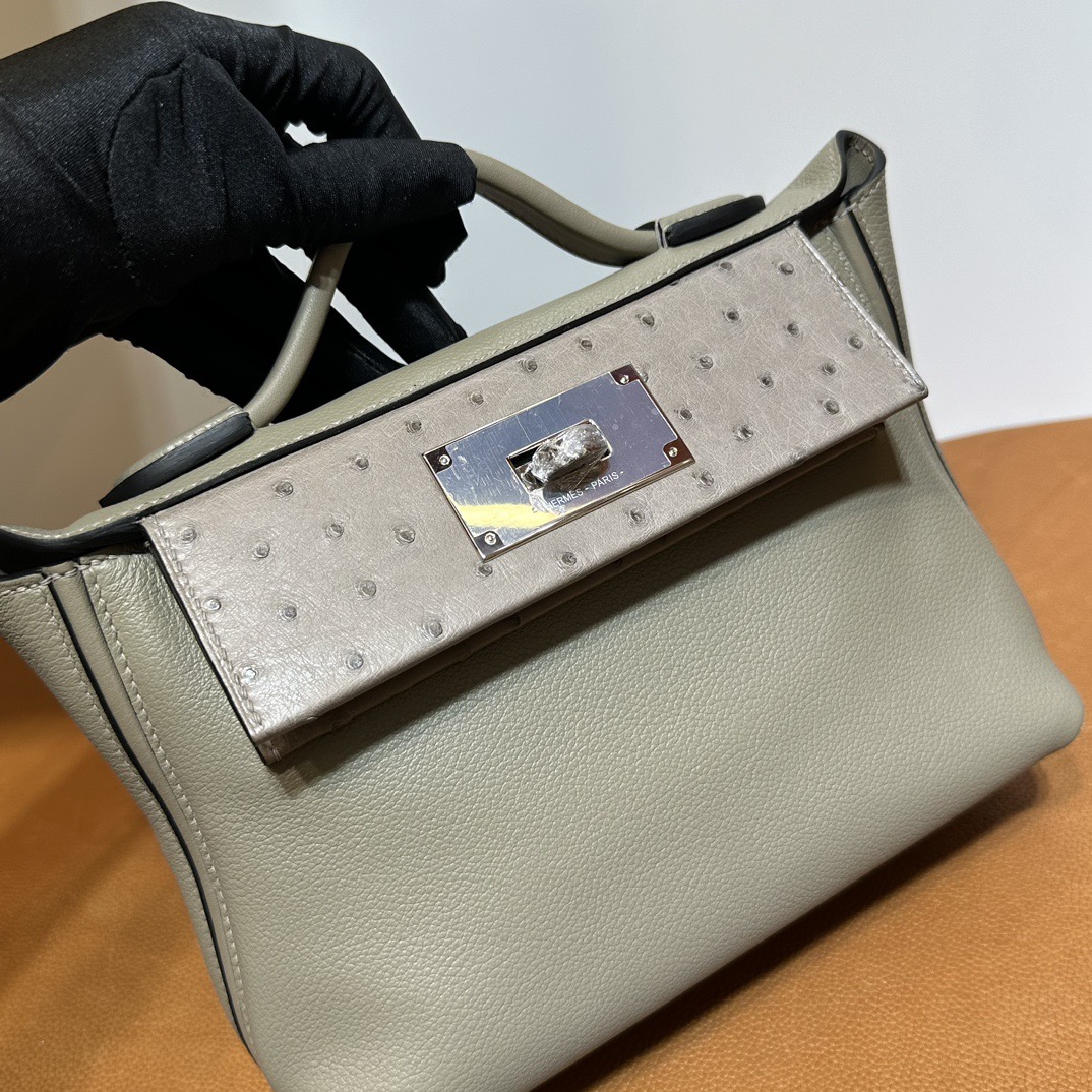 Hermès Mini 24 24 Touch 21cm Evercolor Leather And Ostrich M8 Gris Asphalt 沥青灰 Palladium Hardware(PHW)
