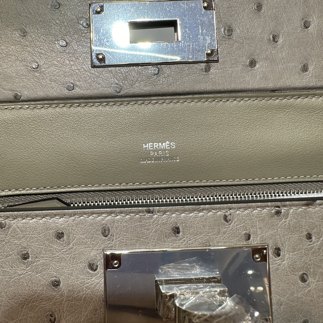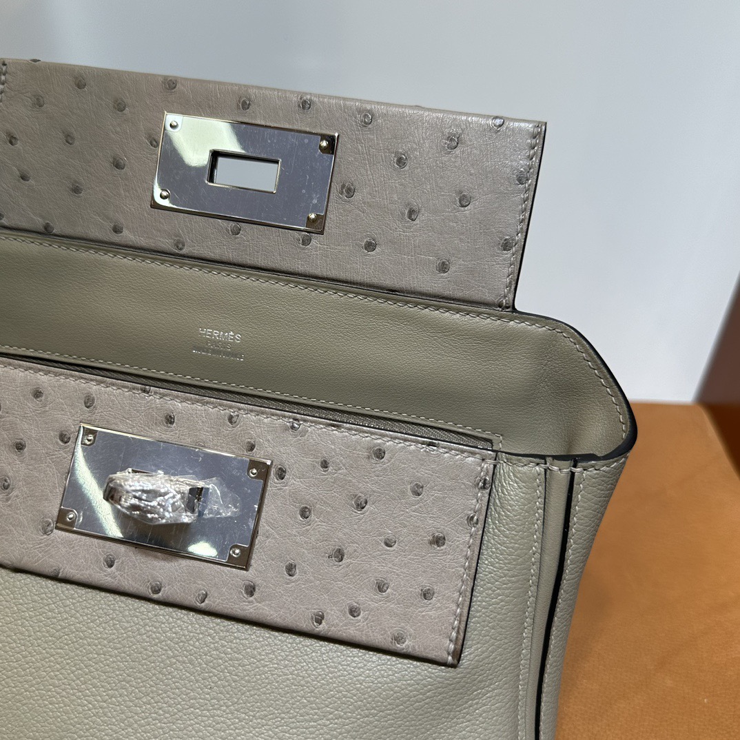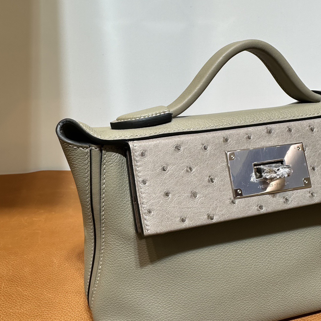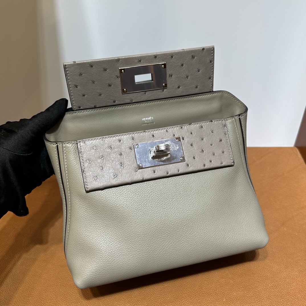 Hermès Mini 24 24 Touch 21cm Evercolor Leather And Ostrich M8 Gris Asphalt 沥青灰 Palladium Hardware(PHW)