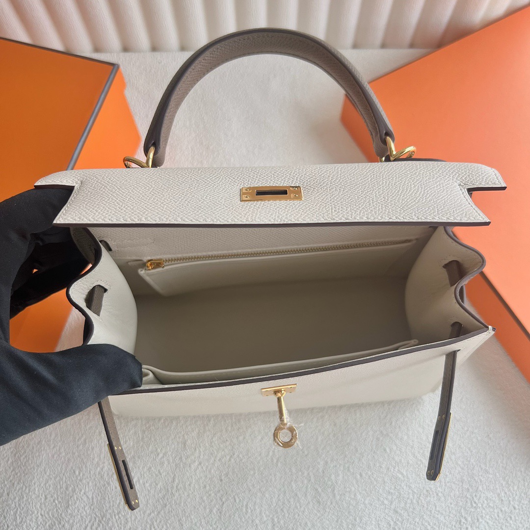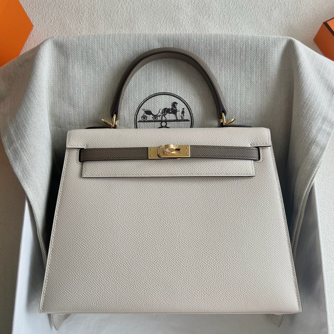 Hermès Kelly 25cm Epsom Leather CC10 Craie 奶昔白 /CC18 Etoupe 大象灰 Gold Hardware(GHW)