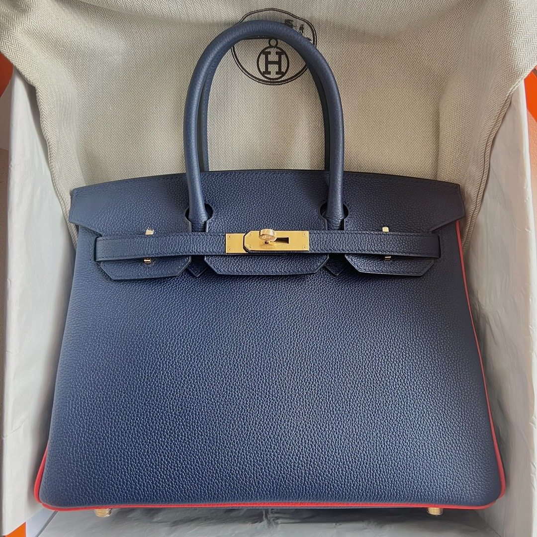 Hermès Birkin 30cm Togo Original Leather from Germany 73 Bleu Sapphire 宝石蓝 /9T Capucine 火焰橙 Gold Hardware(GHW)