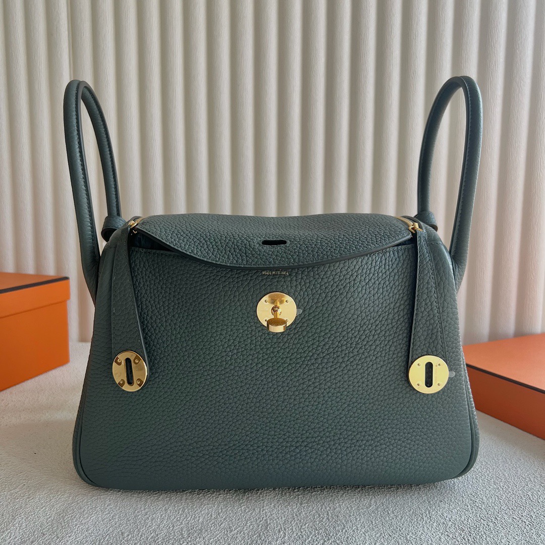 Hermes Lindy 26cm Clemence Leather Color CC63 Vert Amande 杏绿色 Gold Hardware(GHW)