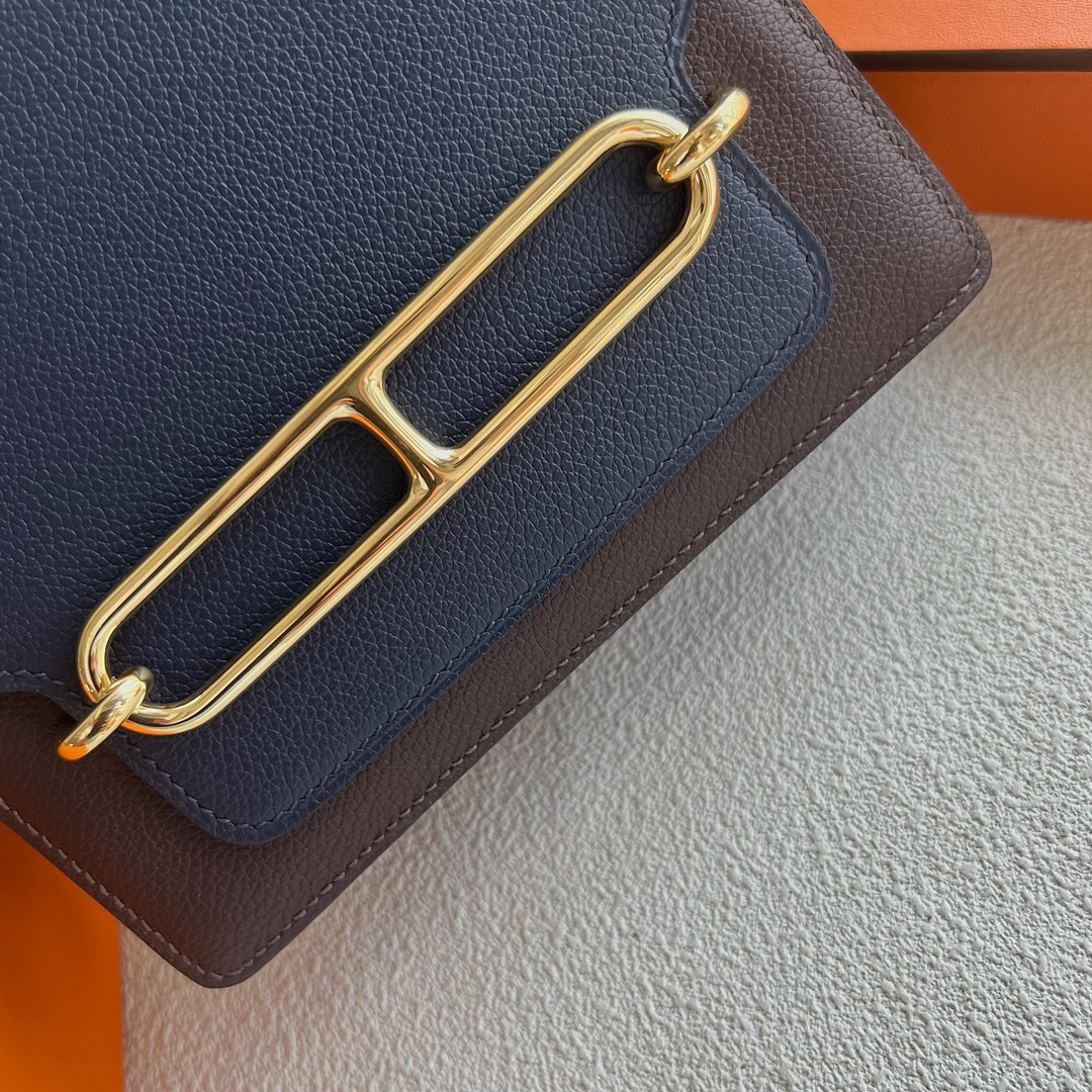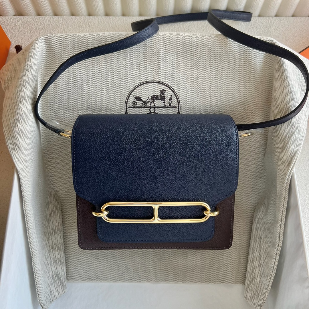 Hermes Roulis 18cm Evercolor Leather Color Ck73 sapphire blue 宝石蓝 And 0G Rouge Sellier 马鞍红 Permabrass Hardware