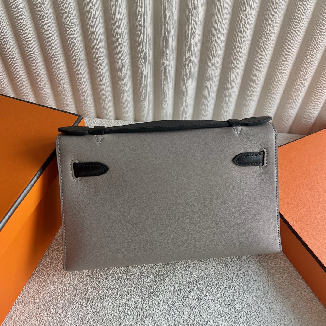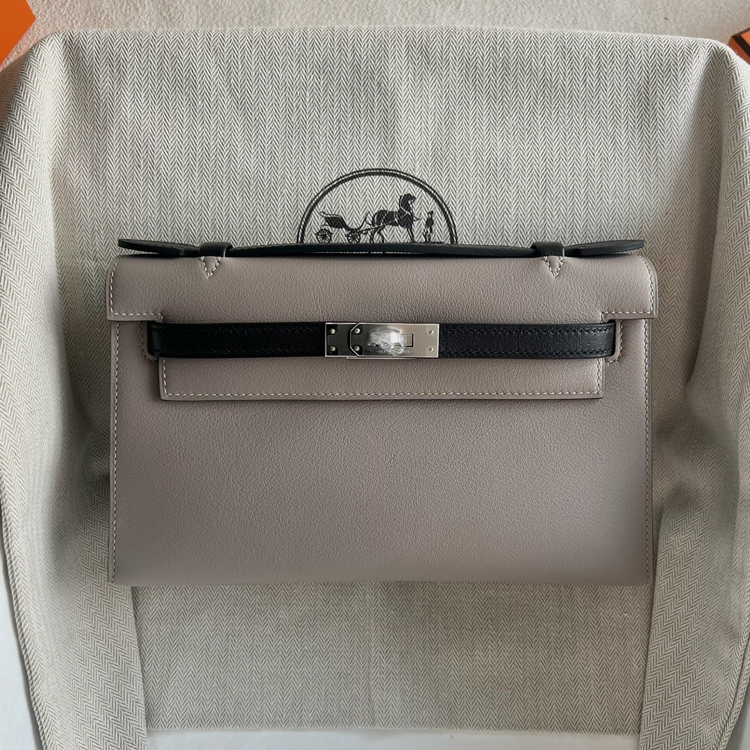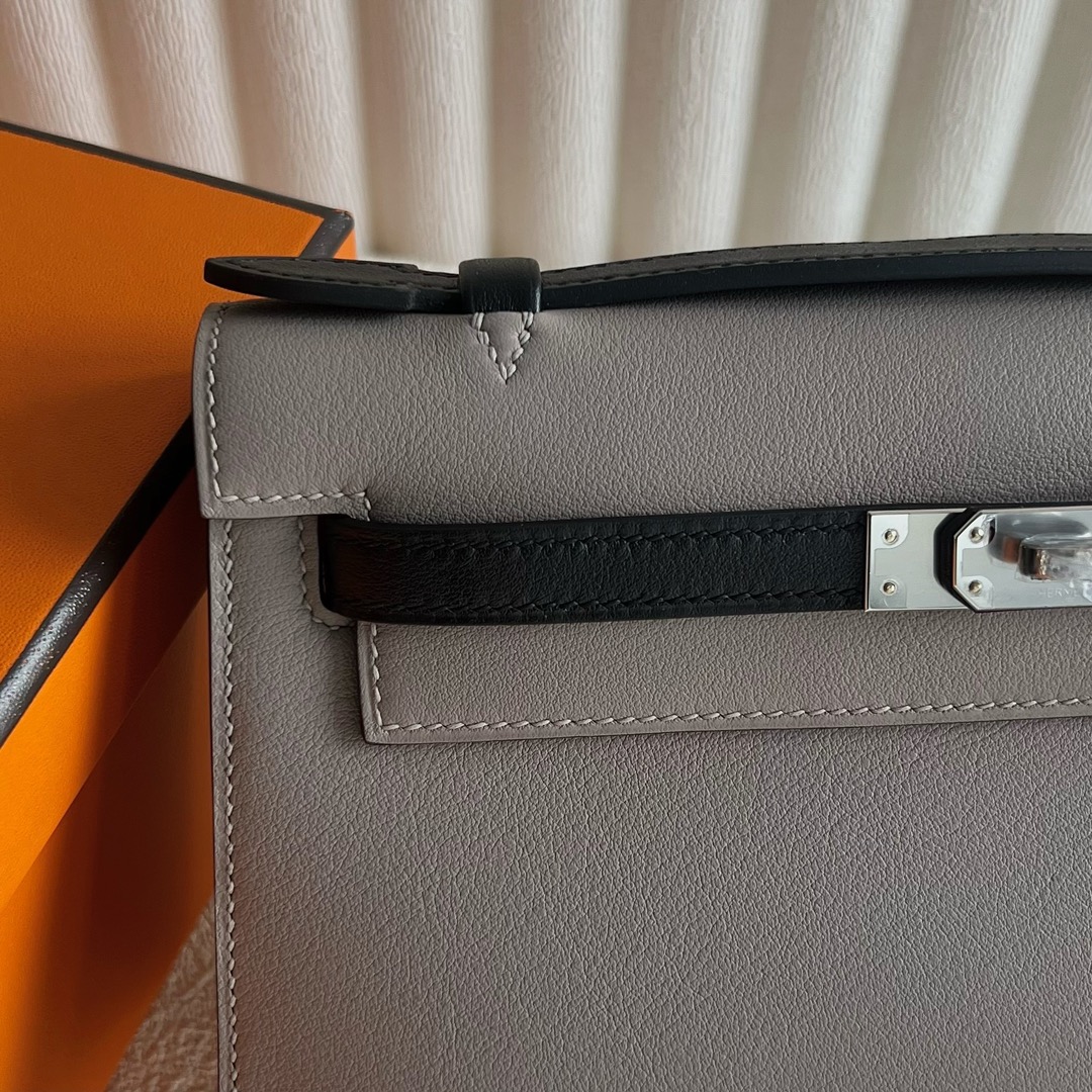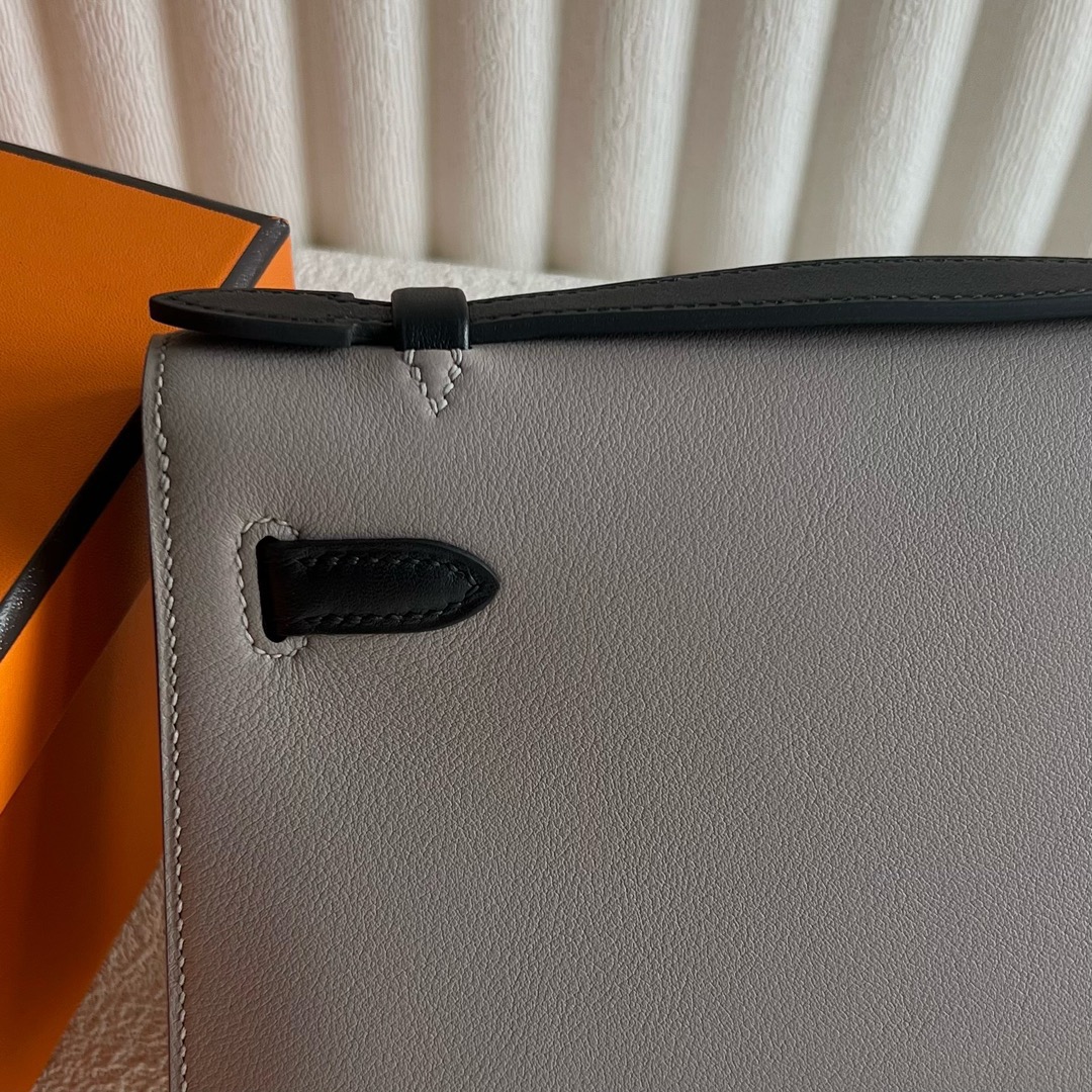Hermes Mini Kelly Pochette 22cm Swift Leather Color M8 Gris Asphalt 沥青灰 And CK89 Nior 黑色 Palladium Hardware(PHW)