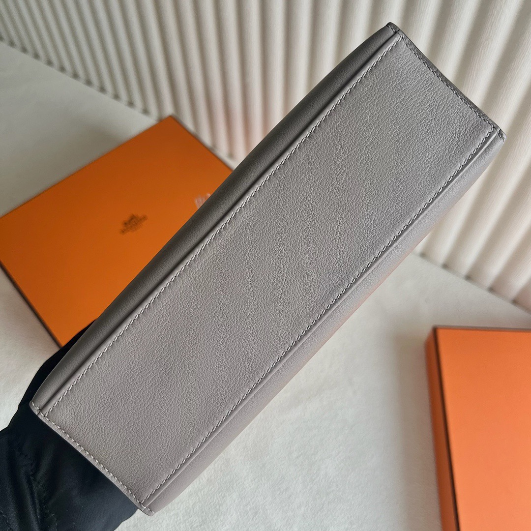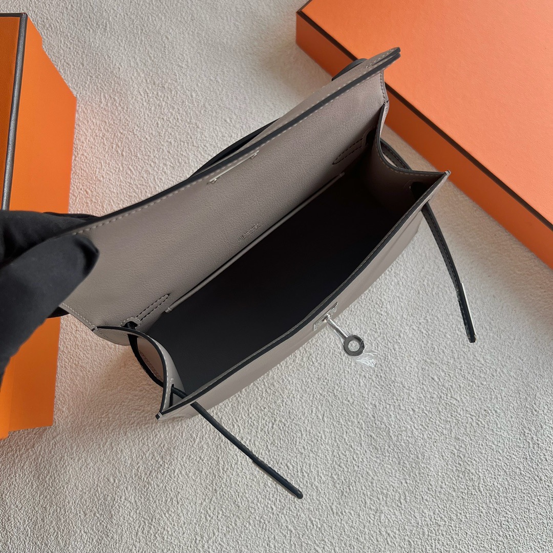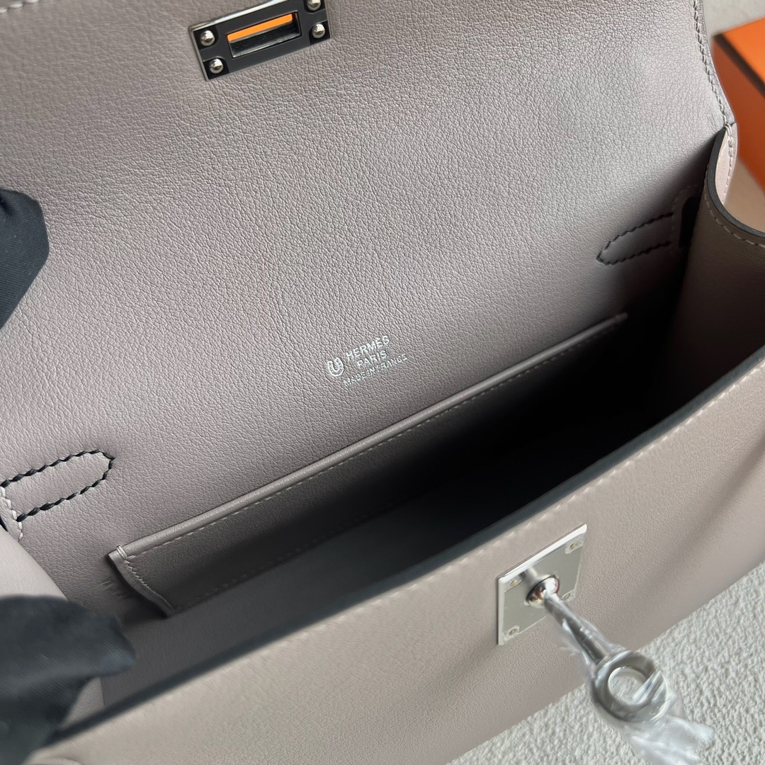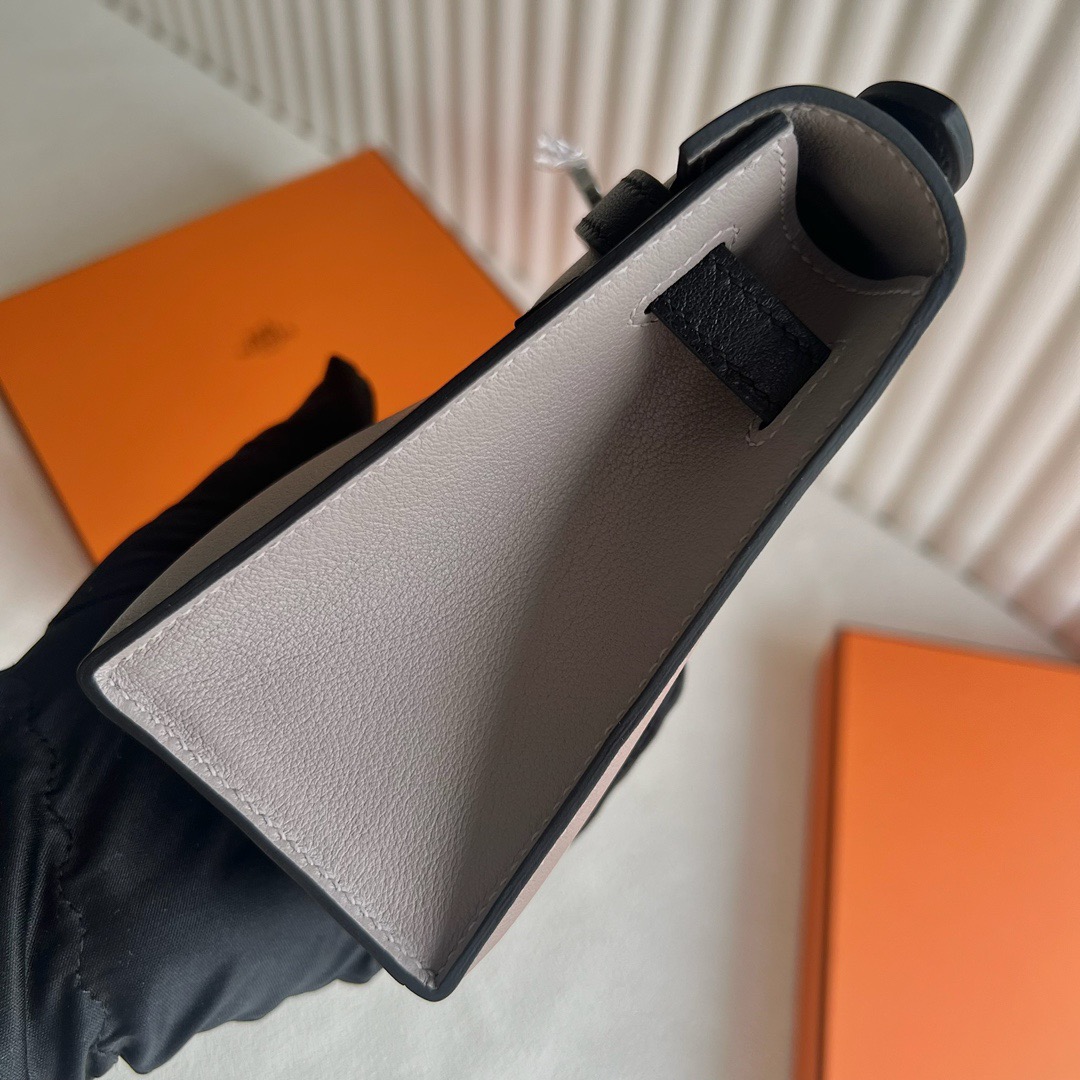 Hermes Mini Kelly Pochette 22cm Swift Leather Color M8 Gris Asphalt 沥青灰 And CK89 Nior 黑色 Palladium Hardware(PHW)