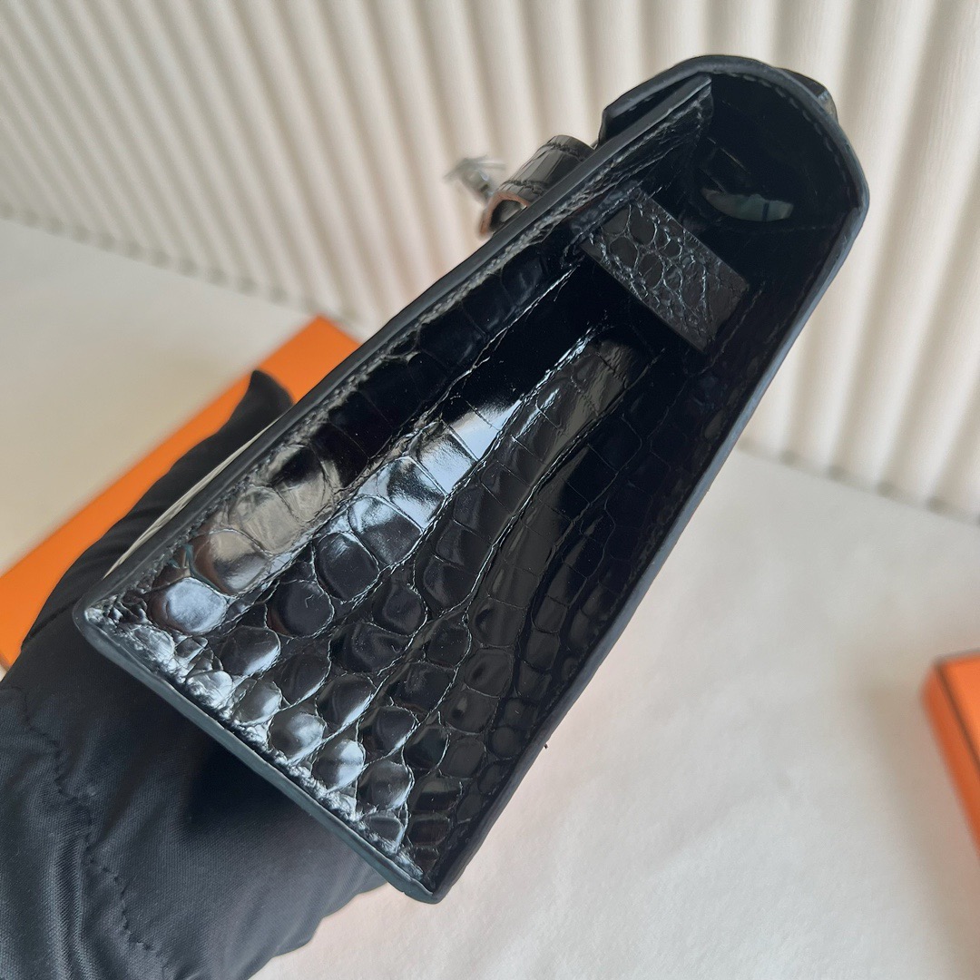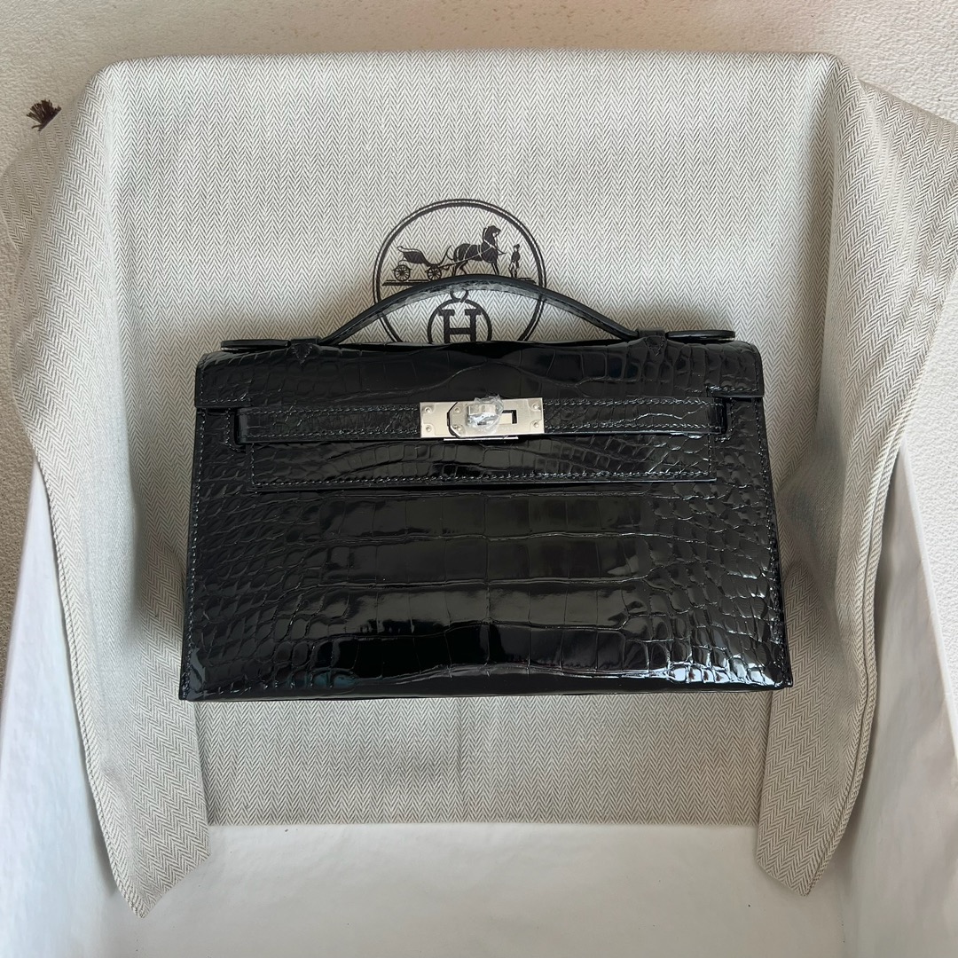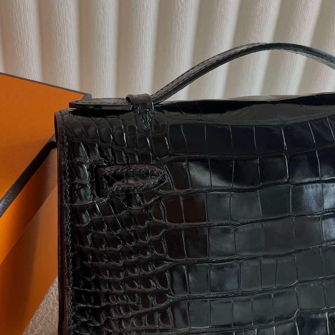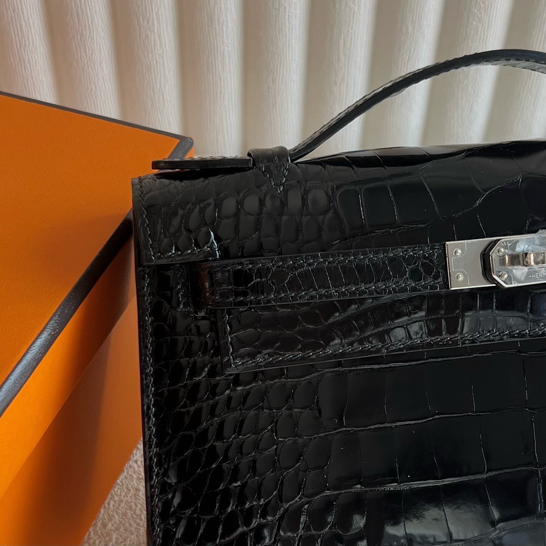 Hermes Mini Kelly Pochette 22cm Shiny Alligator Crocodile Color CK89 Nior 黑色 Palladium Hardware(PHW)