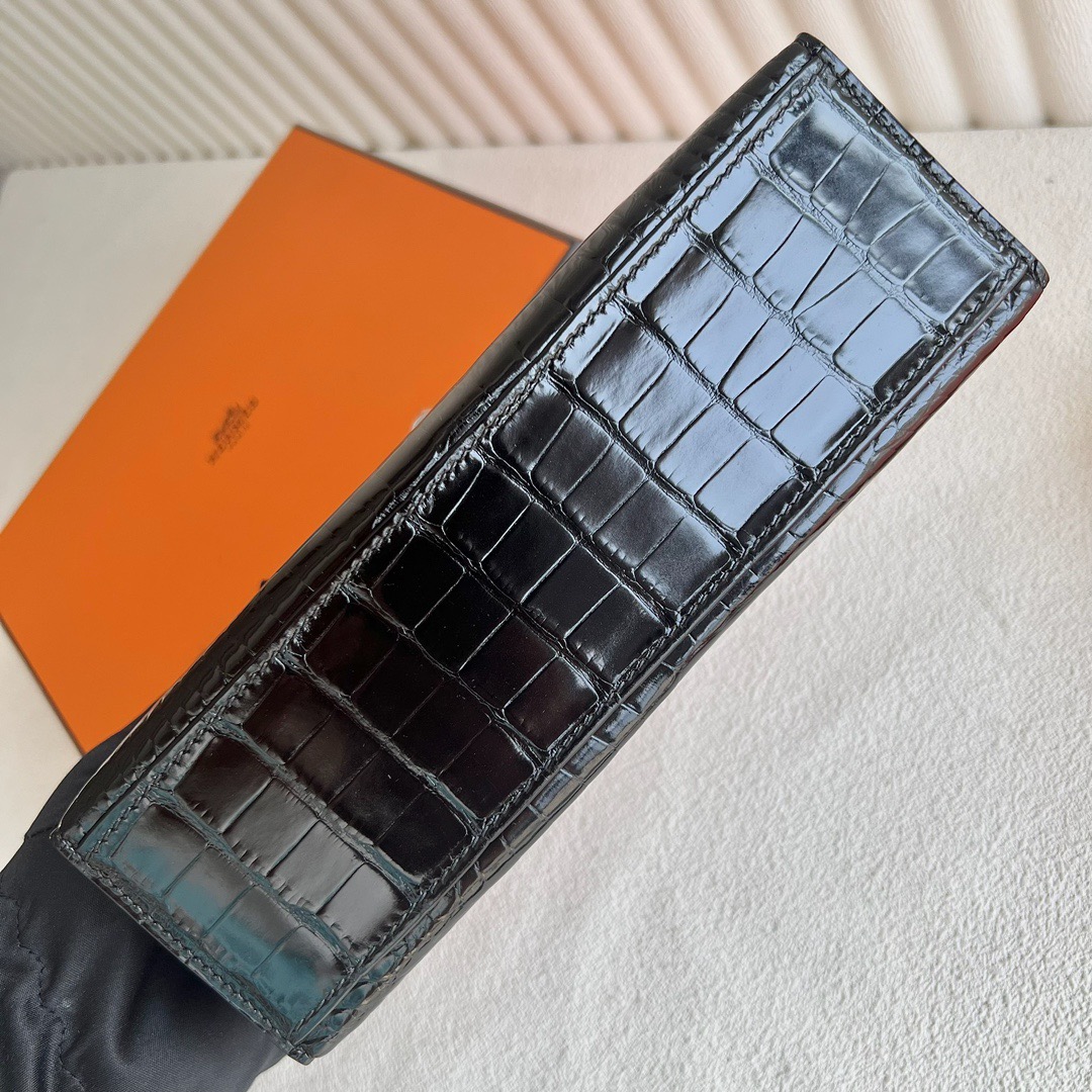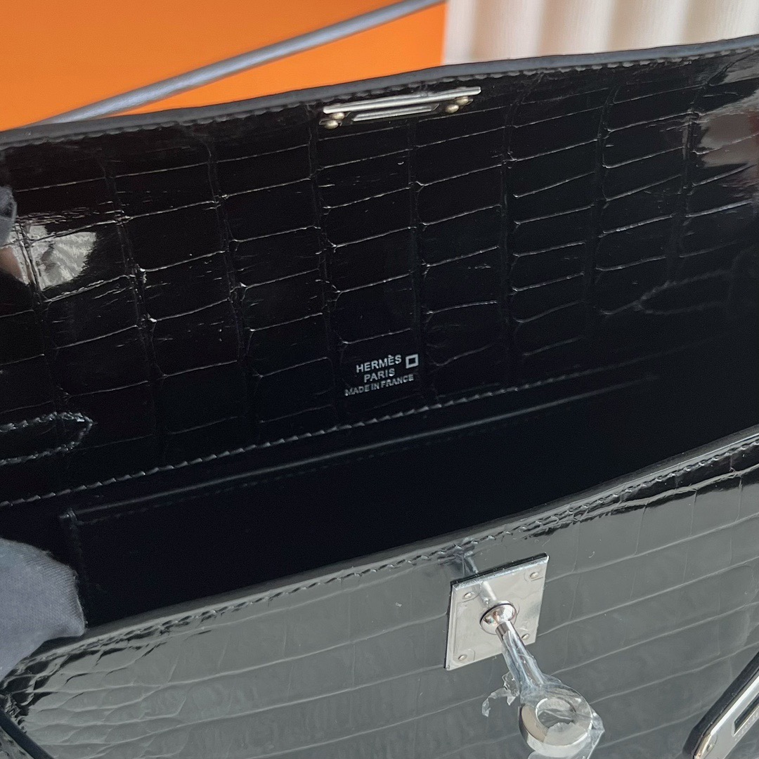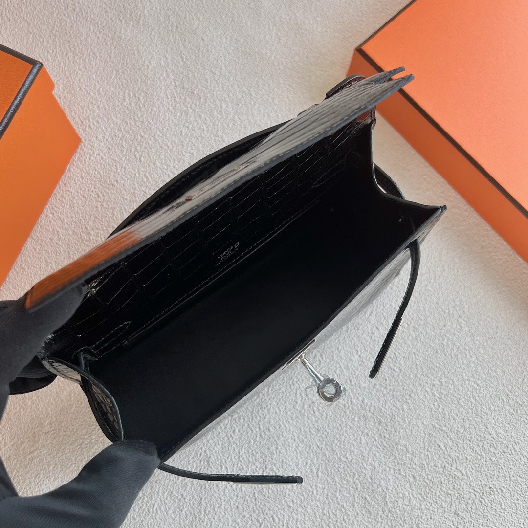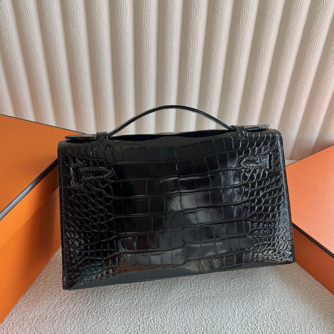 Hermes Mini Kelly Pochette 22cm Shiny Alligator Crocodile Color CK89 Nior 黑色 Palladium Hardware(PHW)