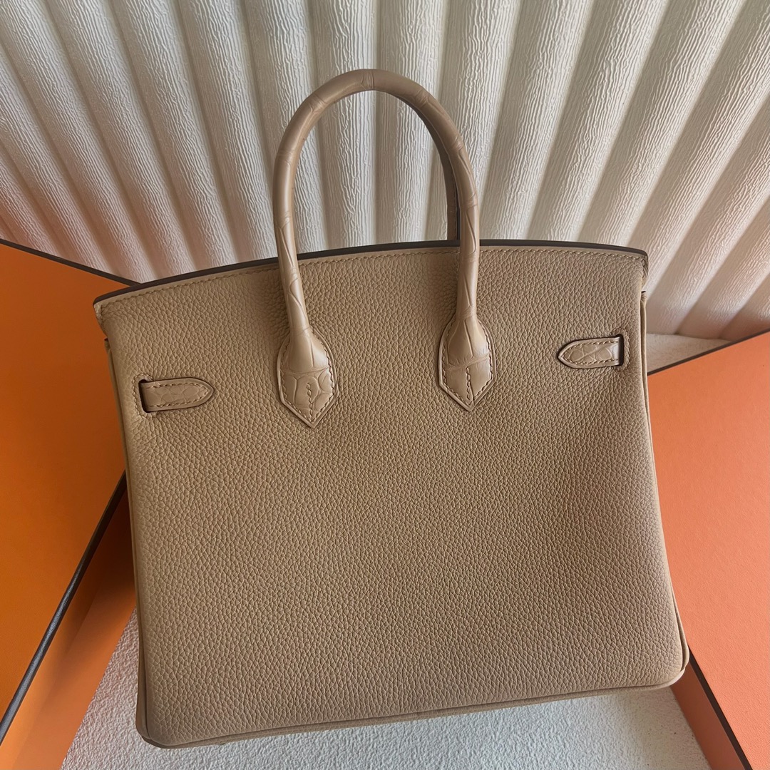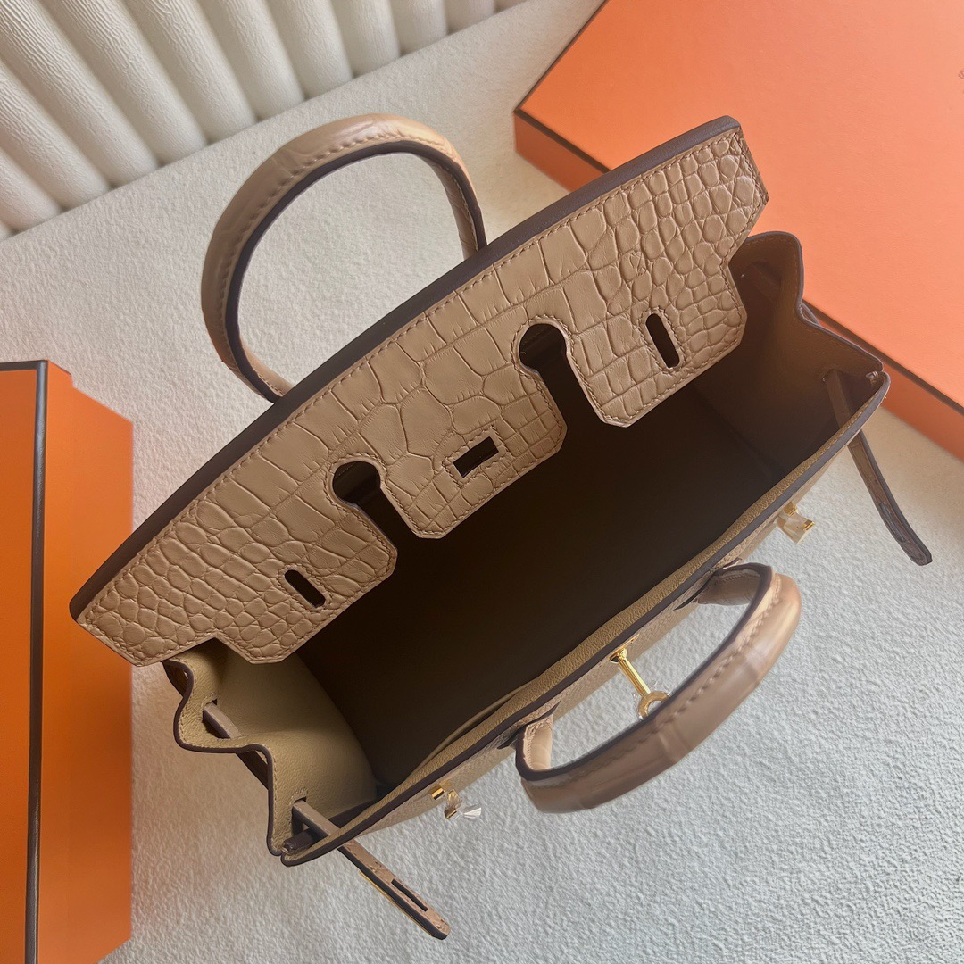 Hermes Birkin 25 Touch Togo And Matte Alligator crocodile Chai Gold Hardware