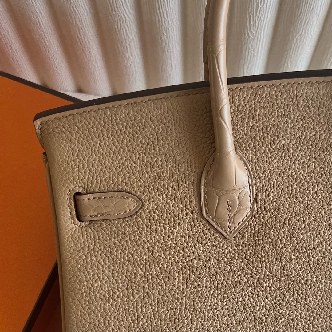 Hermes Birkin 25cm Touch Togo And Matte Alligator crocodile Color 0M Chai 奶茶色 Gold Hardware(GHW)