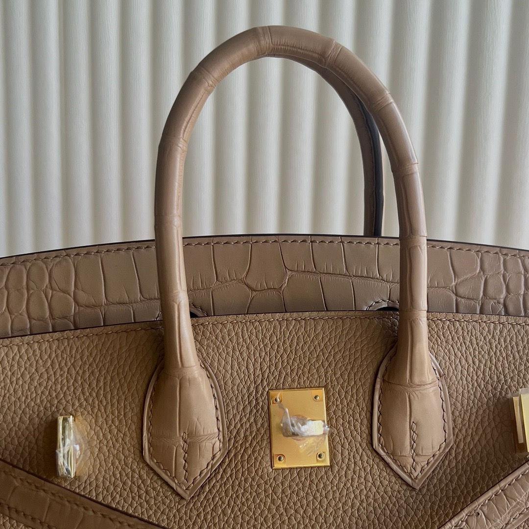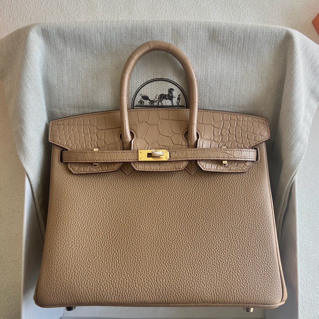 Welcome to shareHermès Birkin kelly Constance Lindy Bag » Hermes Birkin 25 Touch Togo And Matte Alligator crocodile Chai Gold Hardware