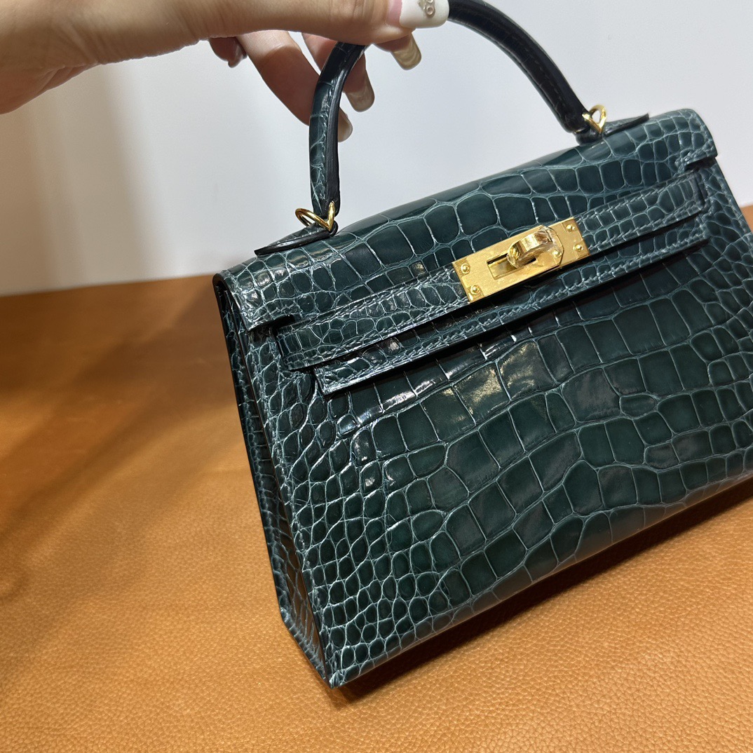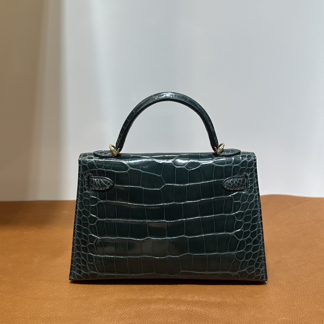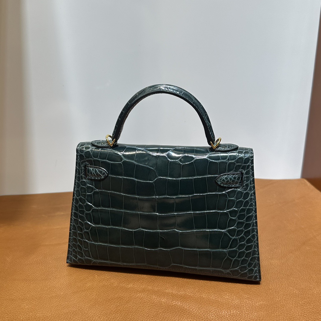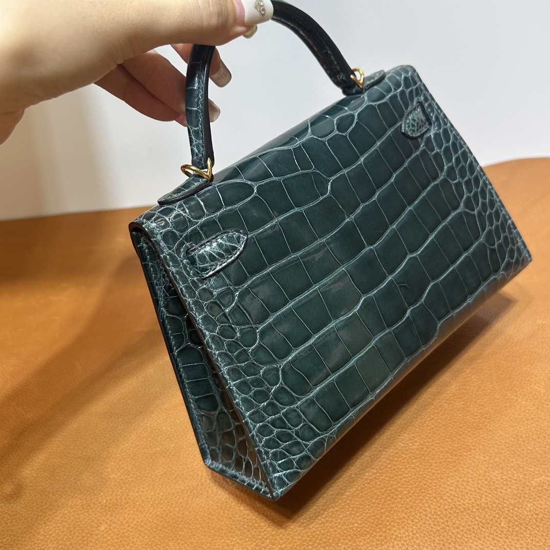 Hermes Kelly Mini 19cm Shiny Alligator Crocodile Color V0 Vert Rousseau 卢梭绿 Gold Hardware(GHW)