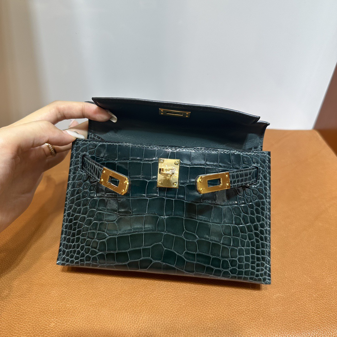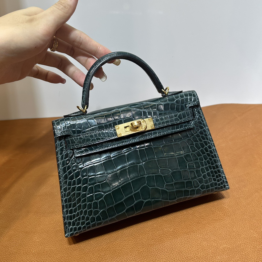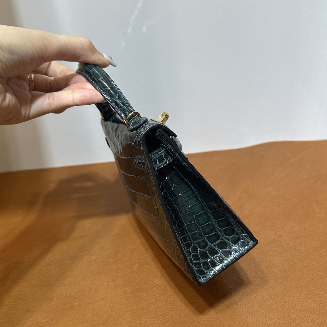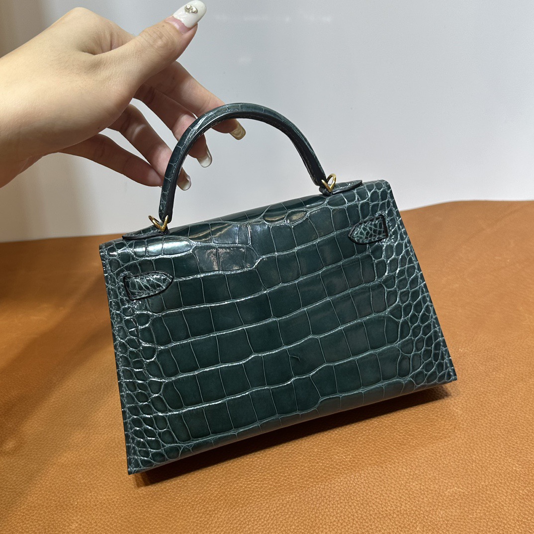 Hermes Kelly Mini 19cm Shiny Alligator Crocodile Color V0 Vert Rousseau 卢梭绿 Gold Hardware(GHW)