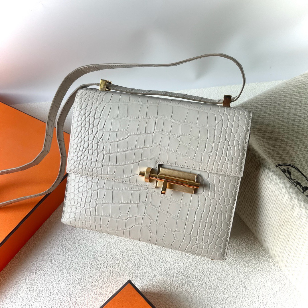 Hermes Verrou Bag 21cm Beton Matt Mississippiensis Alligator Crocodile Gold Hardware